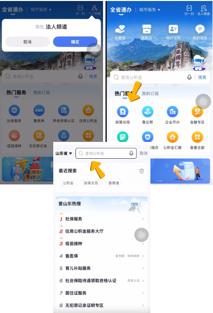 登录“爱山东”APP首页,右上角切换为“法人频道”,在“热门服务”中选择“政策兑现”进入,也可以在搜索框中搜索“政策兑现”进入。