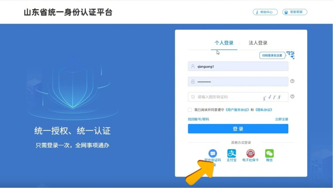 个人登录支持账号密码、短信验证码、支付宝、电子社保卡、微信等方式;