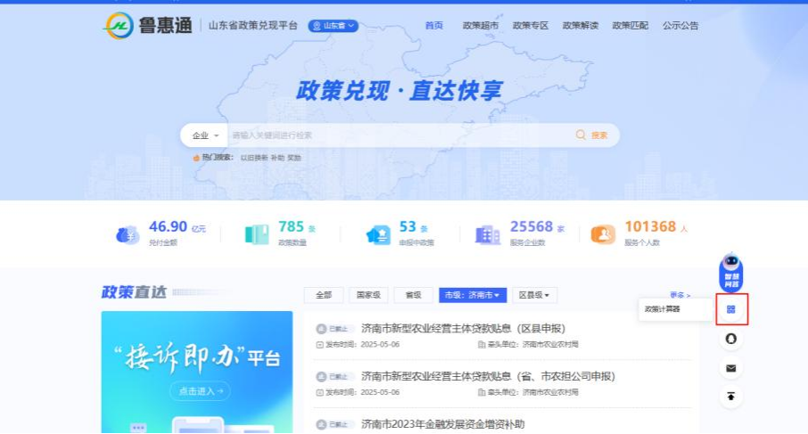 政策计算器是政企服务平台的核心工具,通过大数据和AI技术,精准匹配企业可享受的惠企政策。