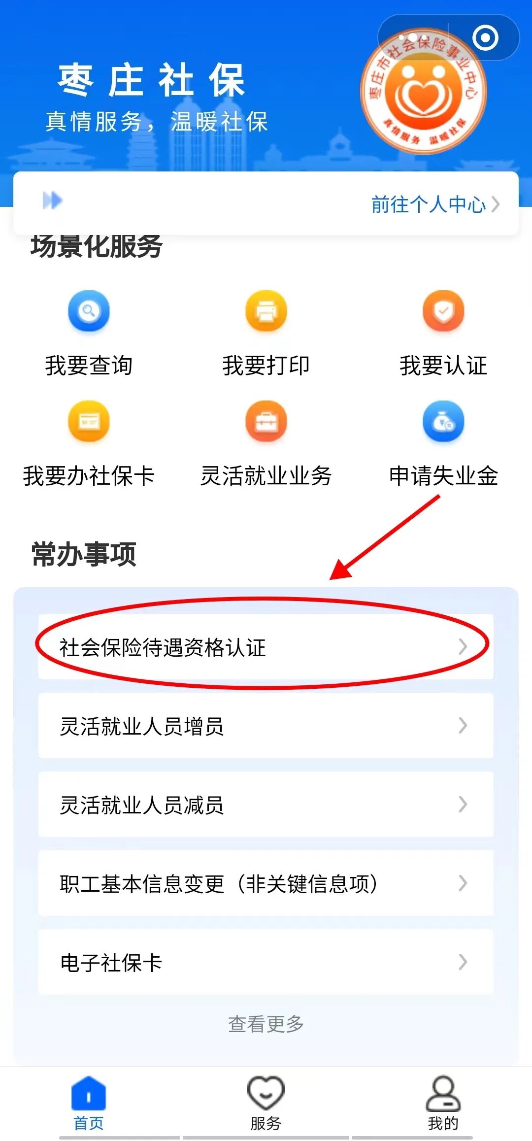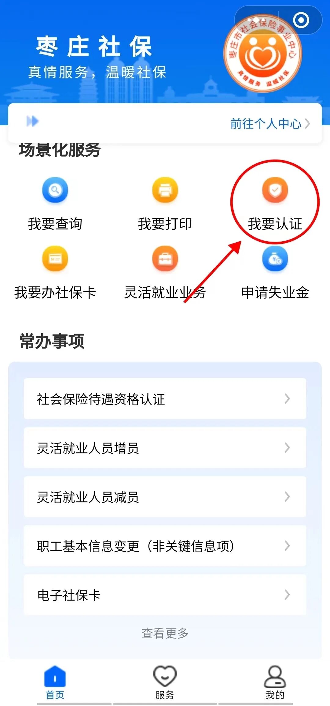 2、资格认证,返回首页,在“场景化服务”中选择“我要认证”。或在“常办事项”中选择“社会保险待遇资格认证”。