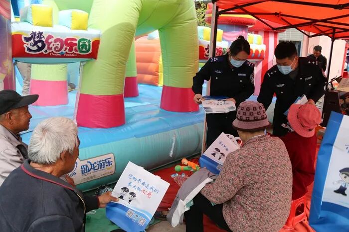 派出所民辅警来到社区、集市,通过向群众发放宣传材料、张贴反诈提示海报、面对面讲解等方式,向群众普及防诈知识,结合典型案例,详细讲解常见的电信诈骗手段和防范技巧,提醒群众做到“不轻信、不透露、不转账”。