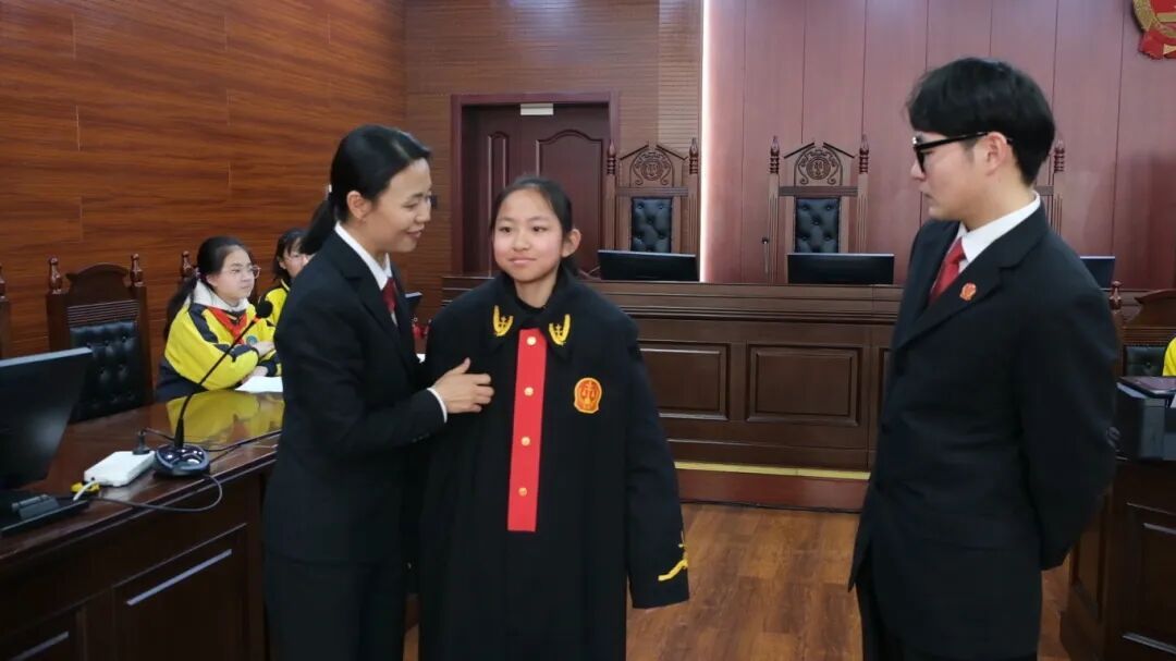 活动现场,法官为学生们介绍了法袍、法槌的作用、组成,以“校园欺凌”等真实案例为切入点,用“法律标尺”为学生们厘清不良行为与违法犯罪的边界。