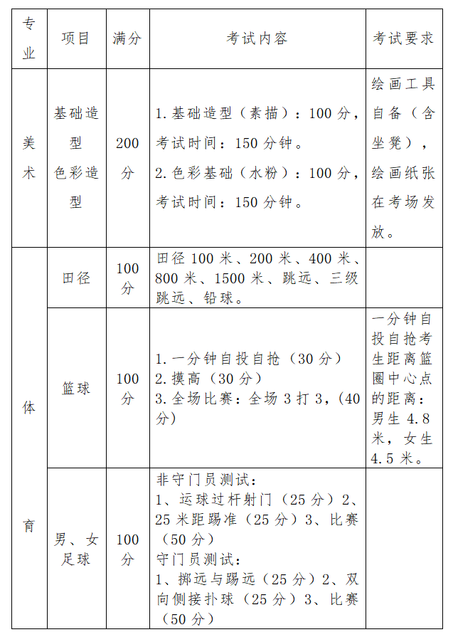 (2)体育、美术专业生报名现场测试视觉,色弱、色盲者不予报名。