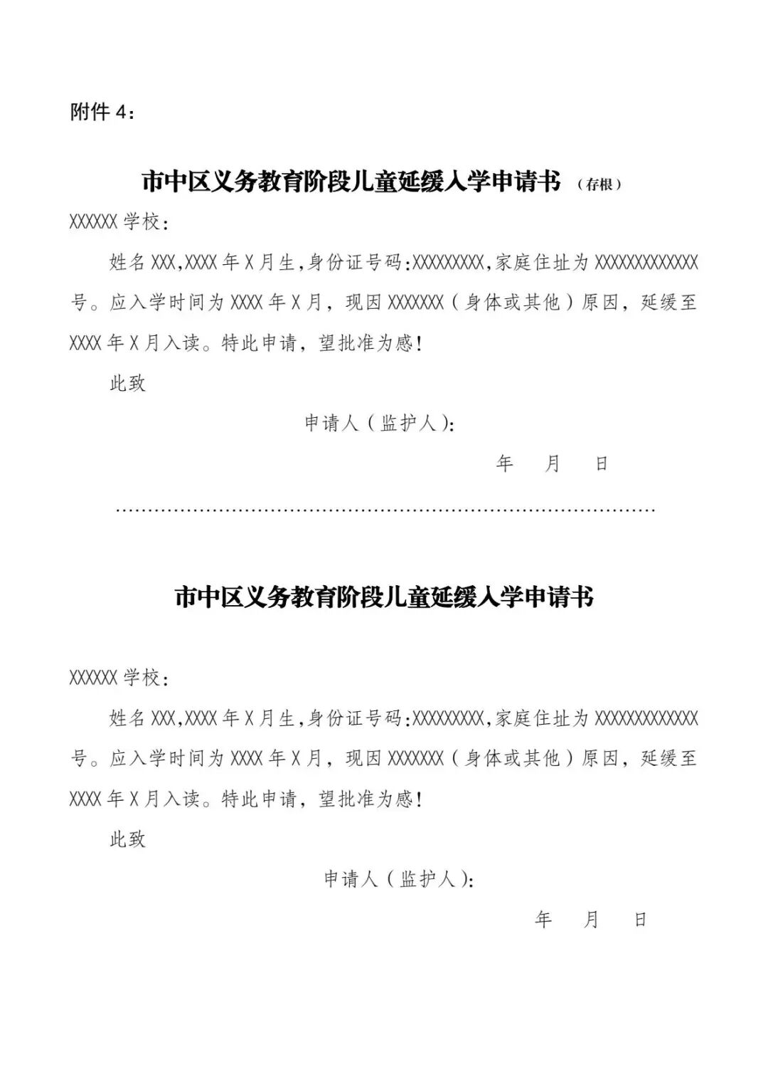 根据《中华人民共和国义务教育法》的规定,小学一年级入学年龄应为年满6周岁(出生截止日期为2019年8月31日)的适龄儿童须依法接受义务教育。适龄儿童需要延缓入学的,在报名期间应由监护人到服务学校提出延缓入学申请,填写《市中区义务教育阶段儿童延缓入学申请书》,见附件4。