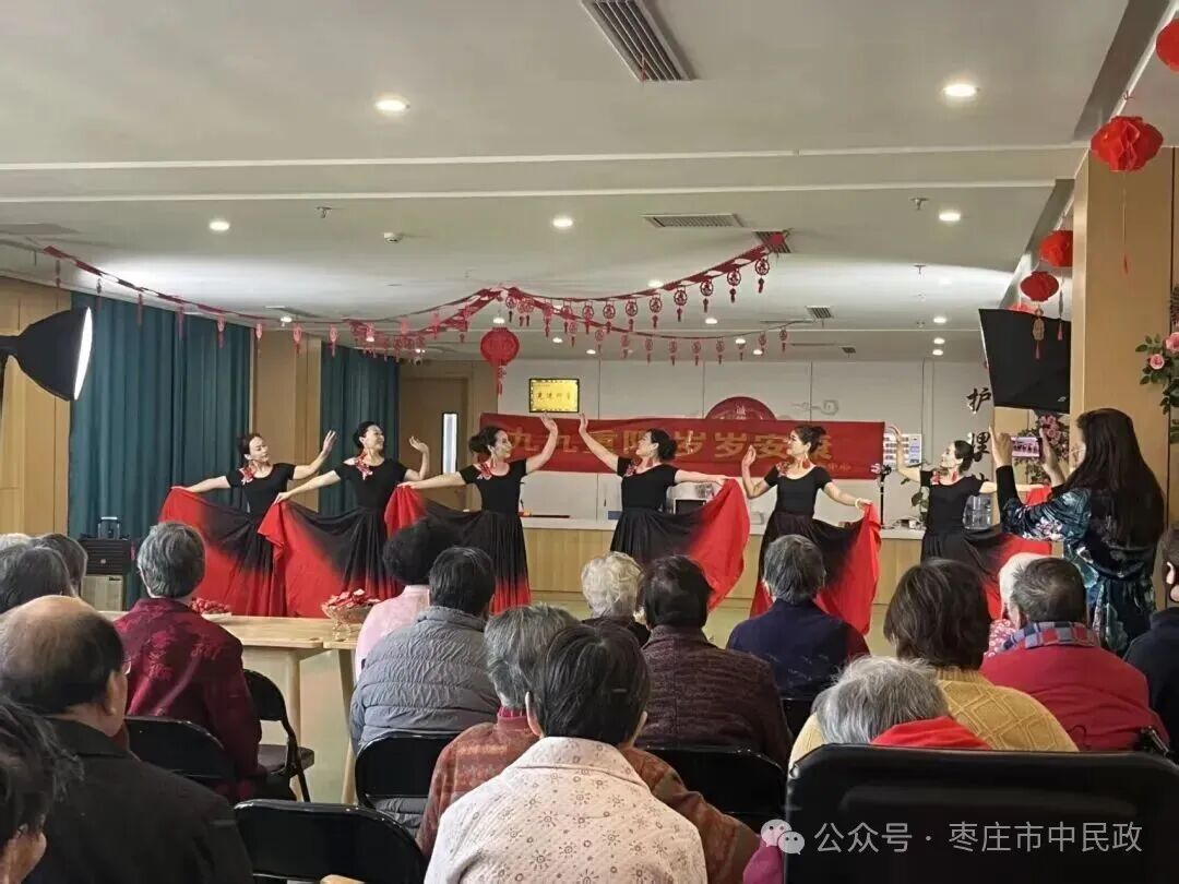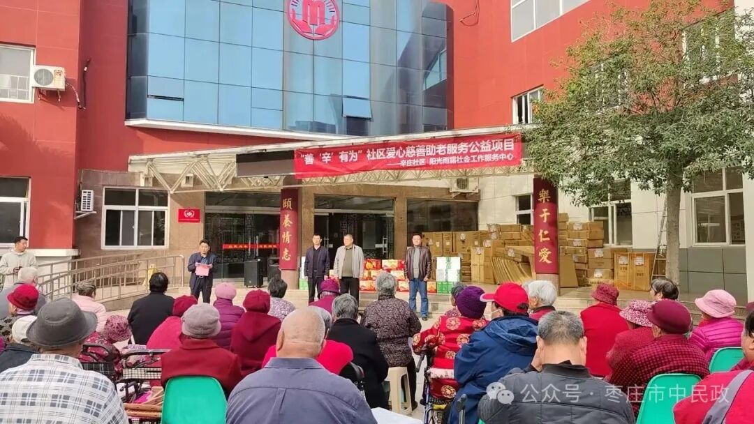龙山路街道辛庄社区携手龙山路街道商会走进市中区社会福利中心,开展 “阳光雨露润桑榆 商会担当暖夕阳” 敬老活动,商会捐赠 20 箱牛奶、面包及12套保暖内衣,同步提供免费理发、证件照拍摄服务,枣庄学院生命科学学院、市曲艺家协会等带来精彩文艺表演。