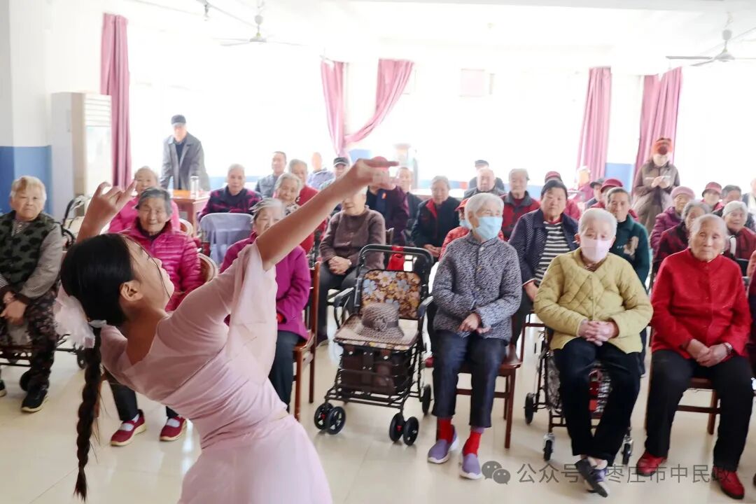 颐源医养服务中心举办“大美颐源康养福地”主题文艺汇演,舞蹈、锣鼓、经典歌曲等节目轮番上演,老人们足不出户就享受到了精彩的文化大餐,现场掌声与笑语不断。枣庄诚德医养中心举办“情暖重阳孝润人心”主题活动,通过开场舞、独唱、电吹管齐奏等精彩节目,搭建老人与家属情感交流桥梁。枣庄广爱医院、广爱康养家园举办“温暖重阳爱在身边”主题活动,为老人送鲜花、送演出,传递浓浓敬老情。