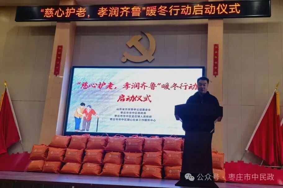 寒冬将至,关怀先行。近日"慈心护老·孝润齐鲁——暖冬行动乡村孤老照护项目"启动仪式在孟庄镇党校温情启幕。本项目由山东省乐安慈孝公益基金会发起,在区民政局指导下,联合孟庄镇人民政府、市中区凝心社会工作服务中心共同实施,旨在为辖区内乡村孤困老人提供多维关怀,传递社会温暖。
