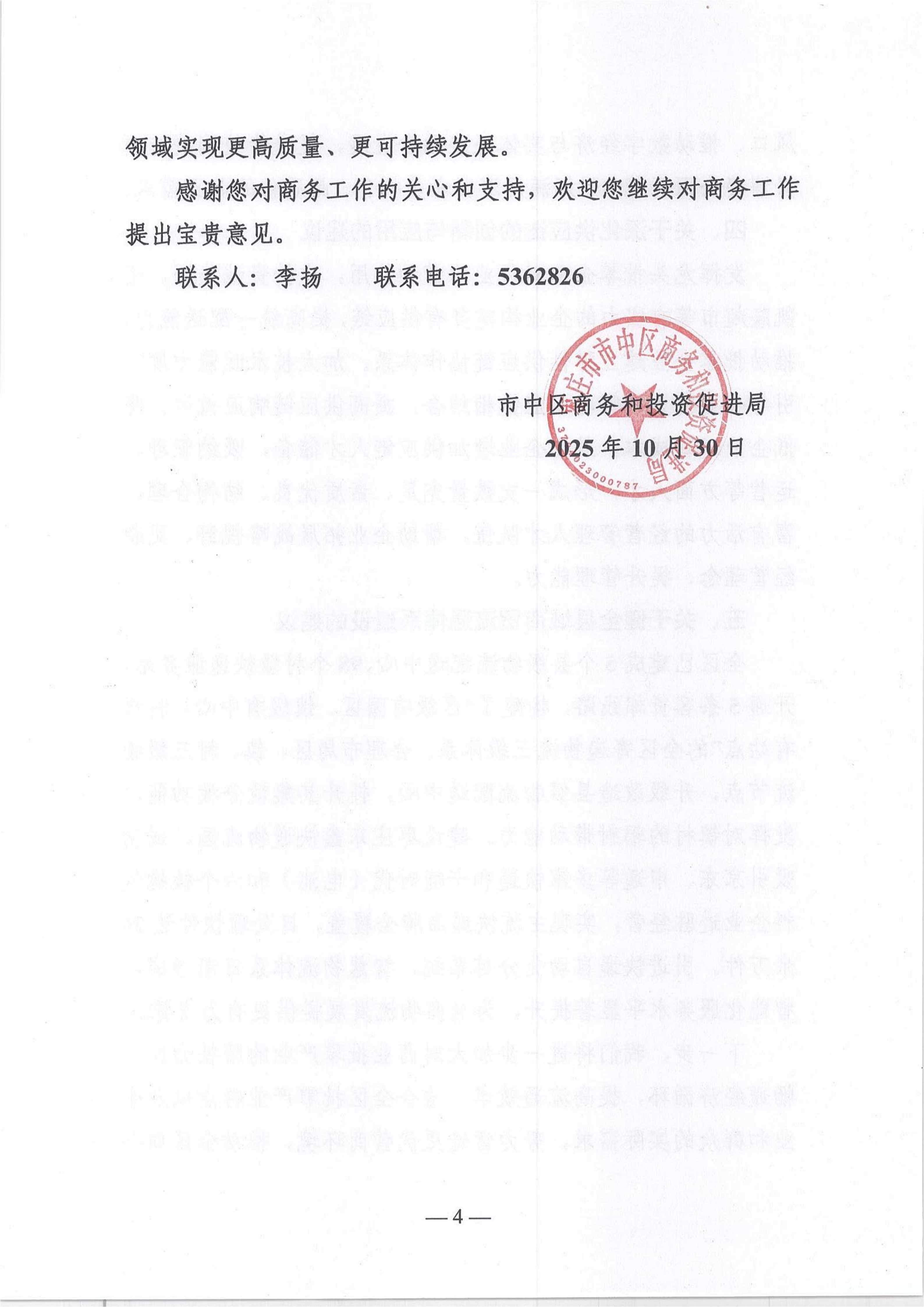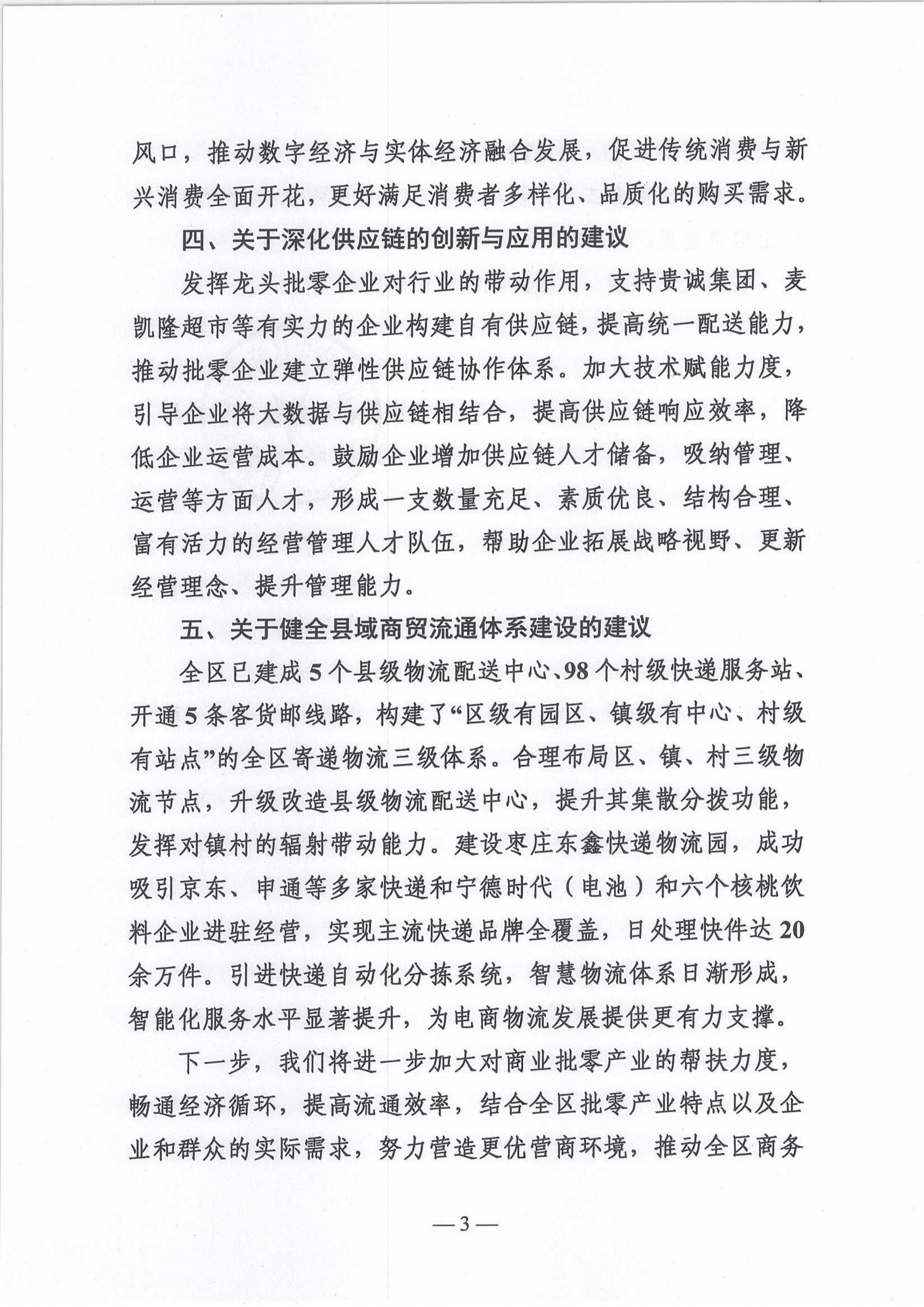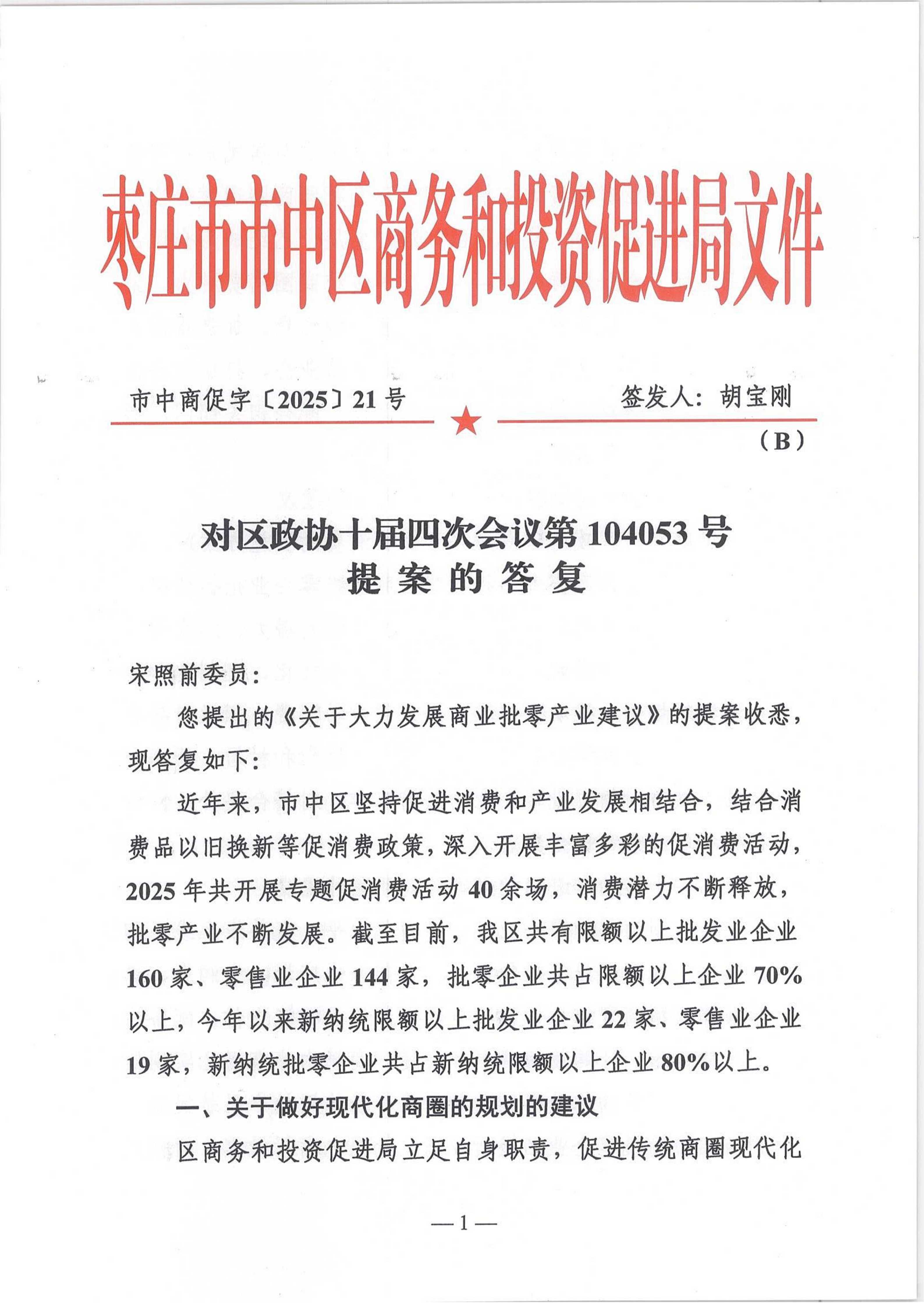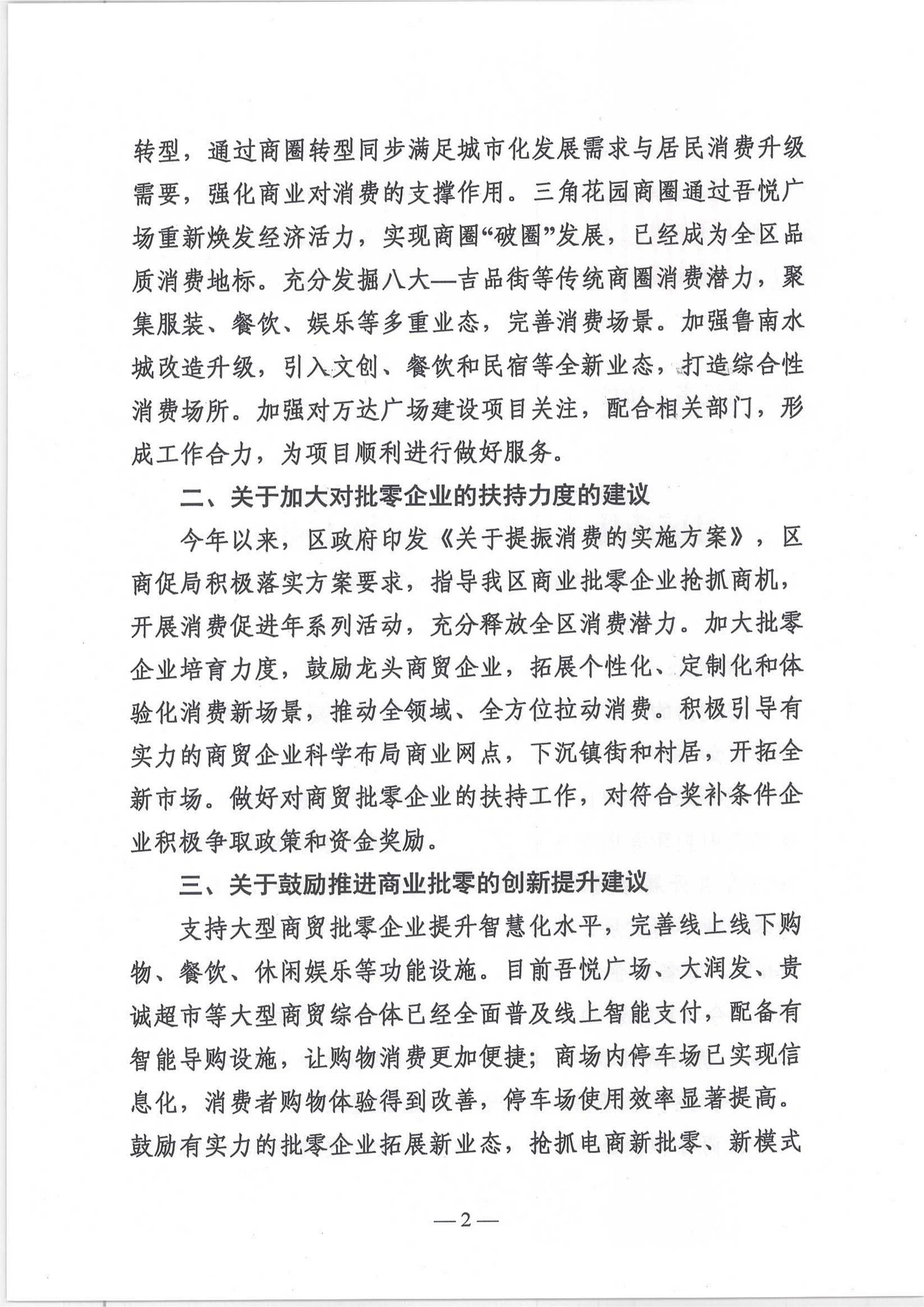 2025年度市中区商务和投资促进局关于区政协十届四次会议第104053号提案的答复(关于大力发展商业批零产业建议)