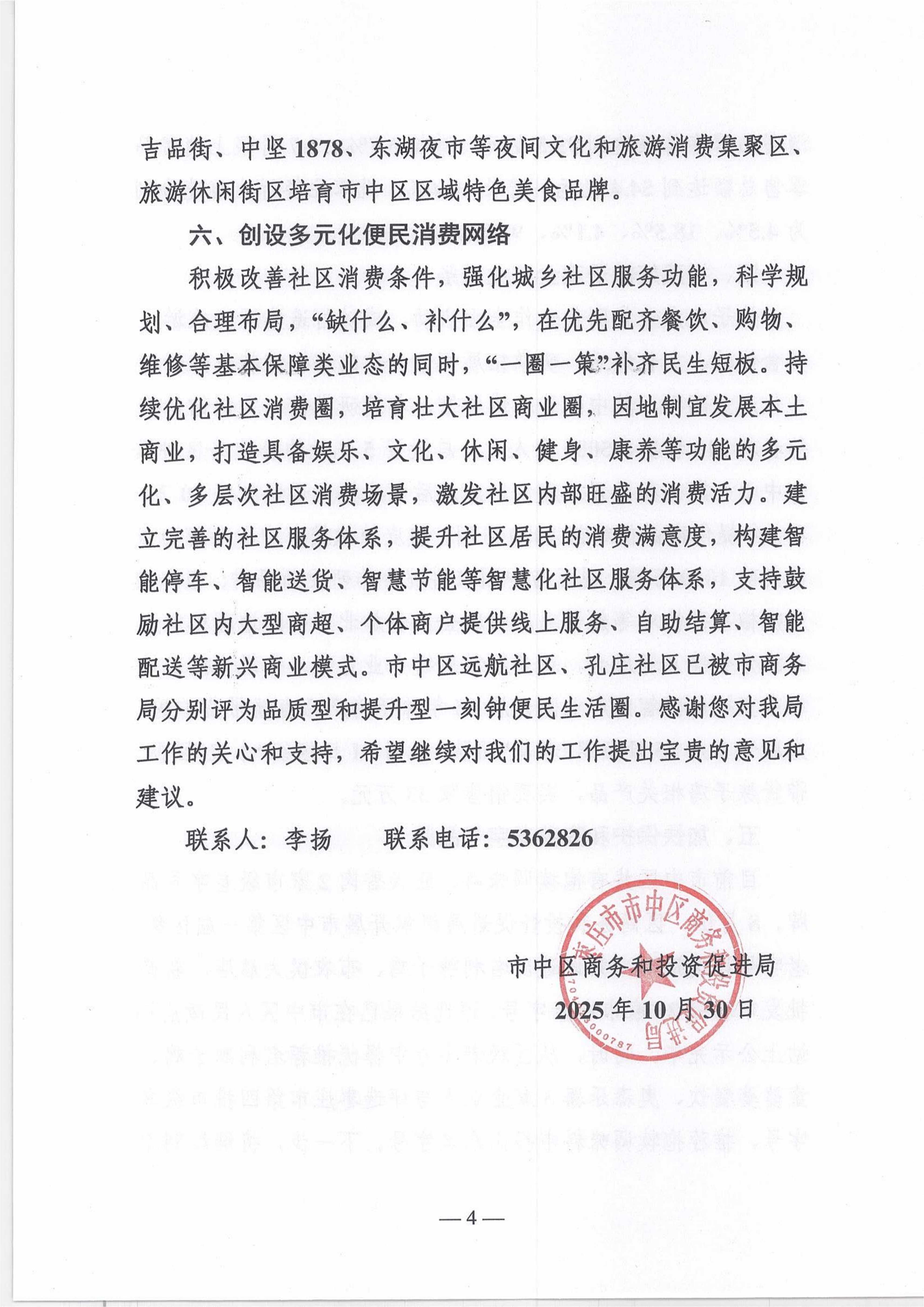 2025年度市中区商务和投资促进局关于区政协十届四次会议第104085号提案的答复(关于助力内循环、提振消费,进一步打造我区商贸新高地的建议)