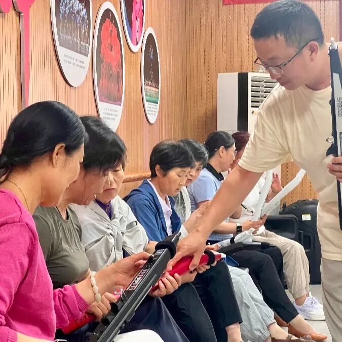 现场学习氛围浓厚,在老师的耐心指导下,学员们手持电吹管尝试不同音色,科技赋予的便捷功能让学习过程充满趣味。