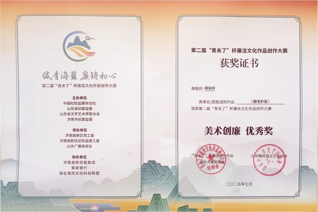 我区非遗传承人胡安同刻瓷作品荣获第二届“青未了”杯廉洁文化作品创作大赛优秀作品奖!