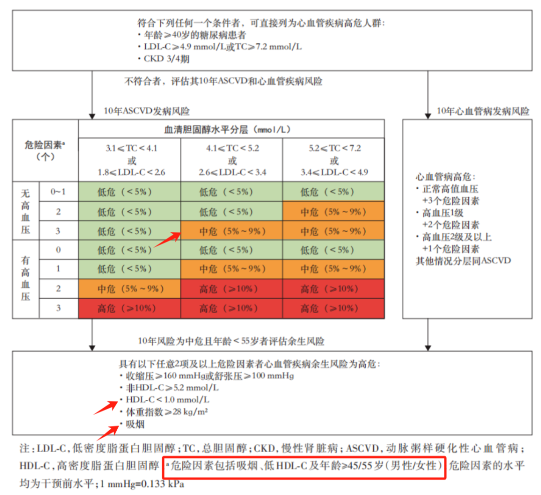 48岁男性,体重指数25kg/㎡,经常抽烟喝酒,无高血压无糖尿病,总胆固醇4.2 mmol/L,高密度脂蛋白0.9 mmol/L,帮我看一哈~