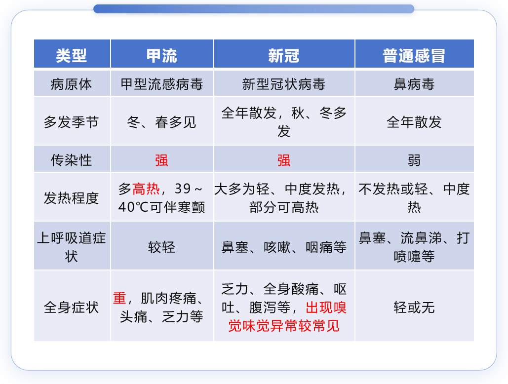 冬季本来就是呼吸道疾病的高发季节,除了流感之外,日常的感冒以及大家熟悉得不得了的新冠病毒,都可能会引起呼吸道、发热等不舒服,那该如何区别呢?