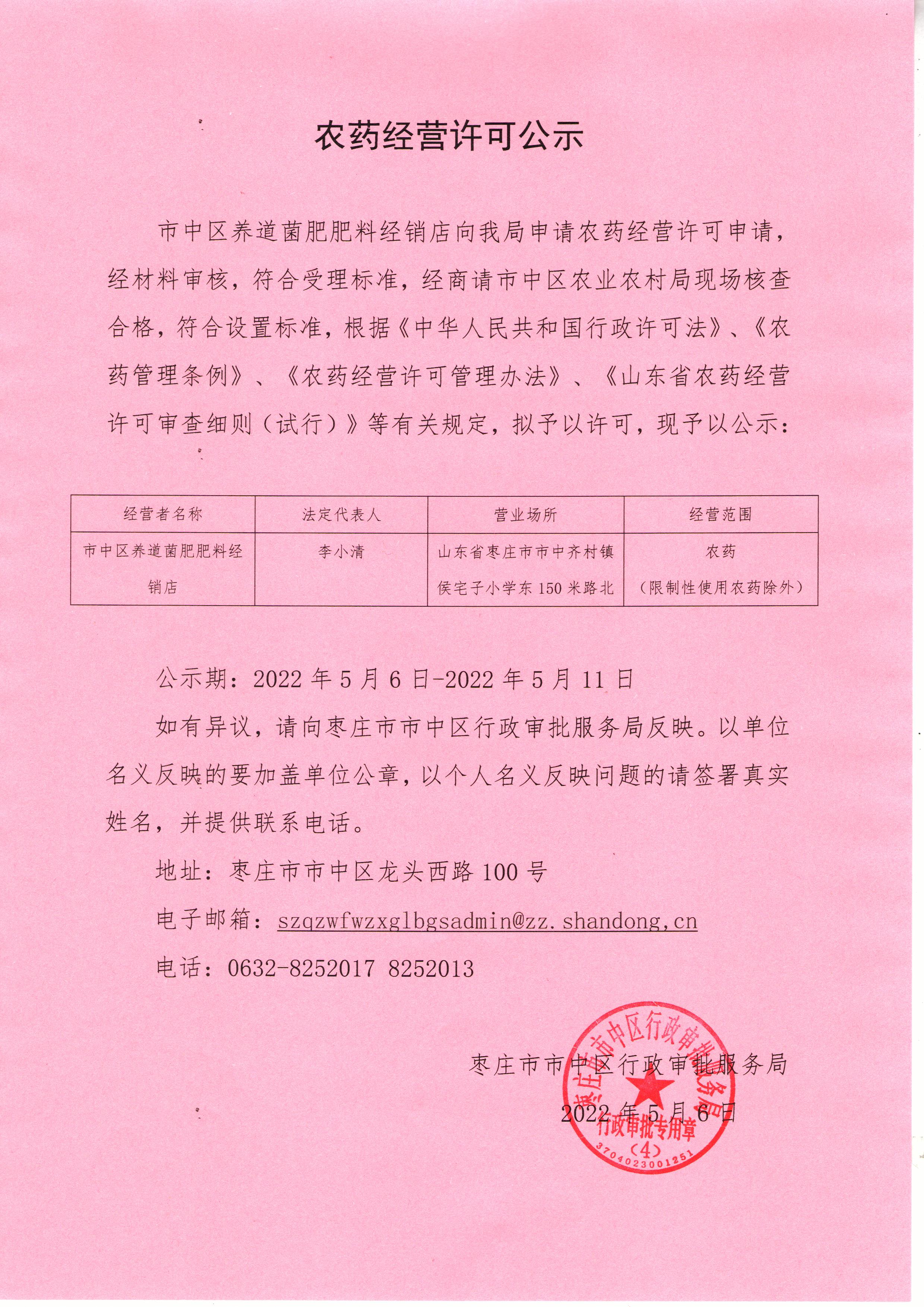 • 标  题:市中区行政审批服务局关于《农药经营许可》的公示