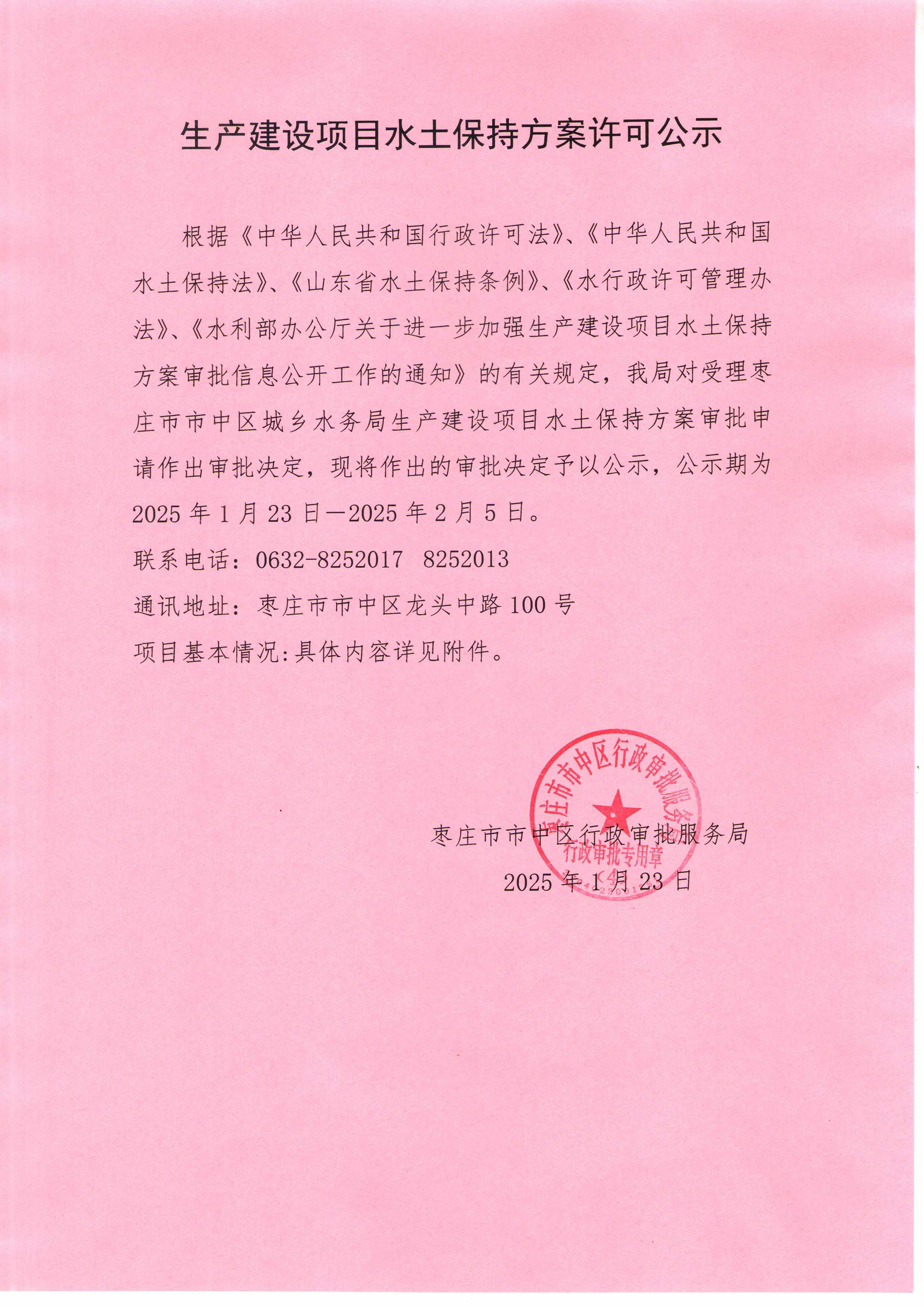 关于枣庄市市中区高铁新区引调水工程水土保持方案准予许可决定书.pdf