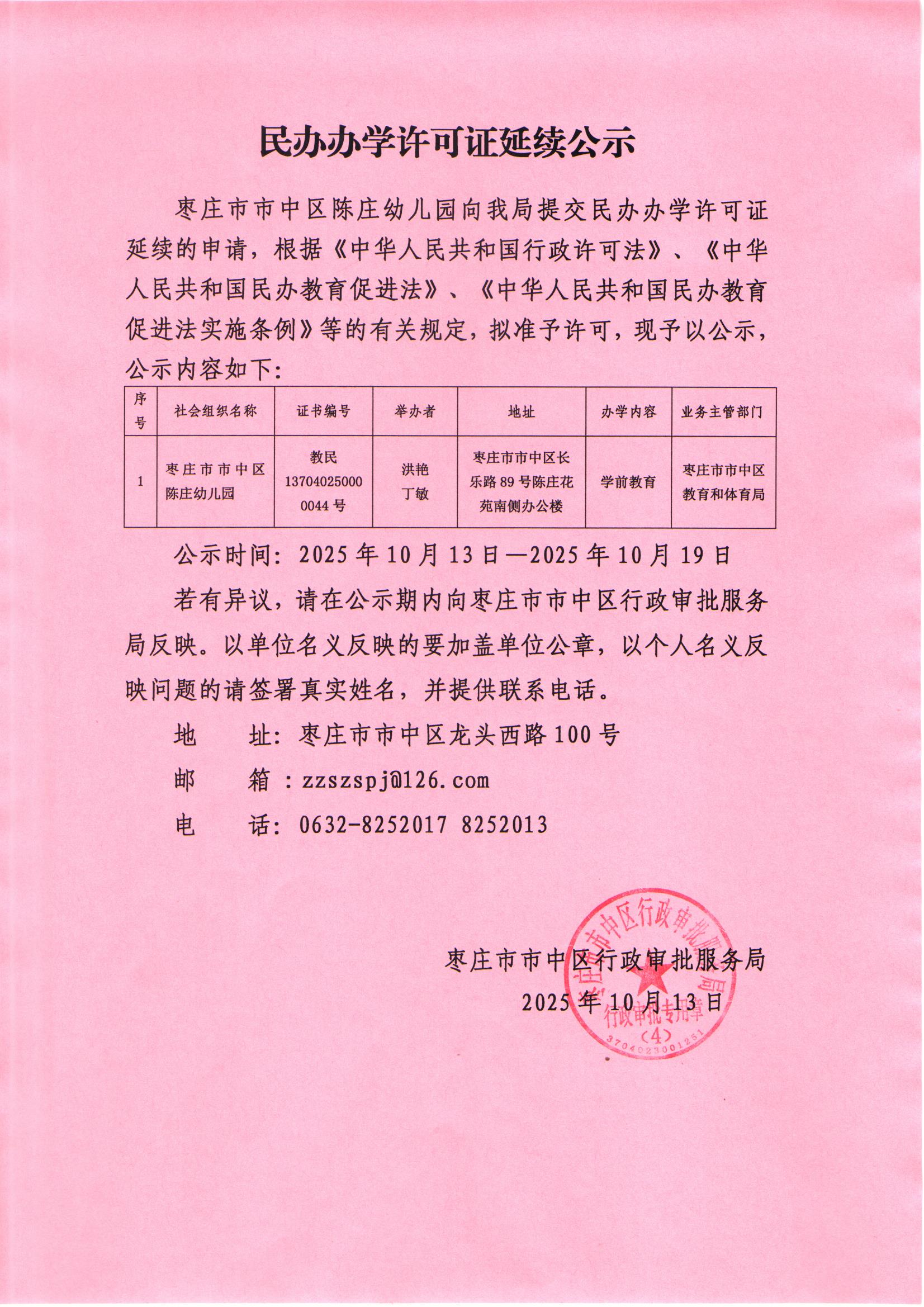 市中区行政审批服务局关于民办办学许可证延续的公示