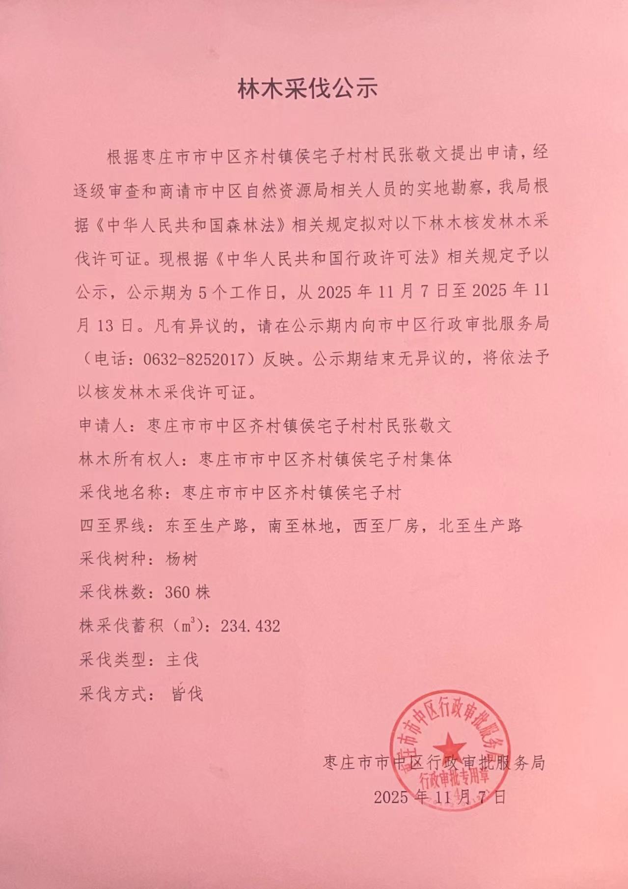 市中区行政审批服务局关于林木采伐公示