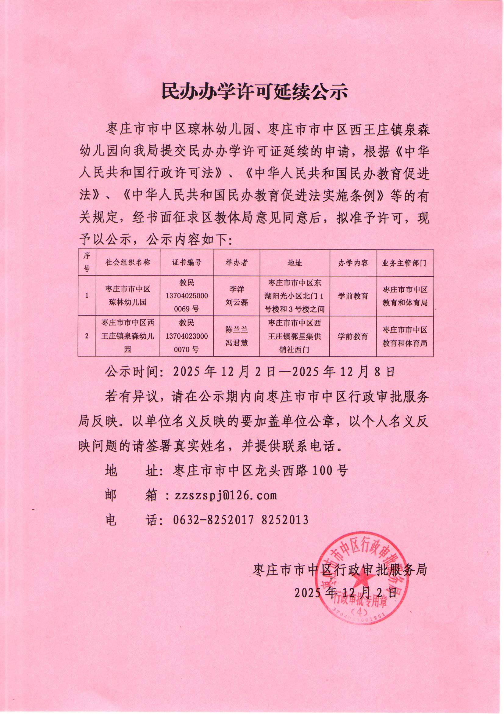 • 标  题:市中区行政审批服务局关于民办办学许可延续的公示