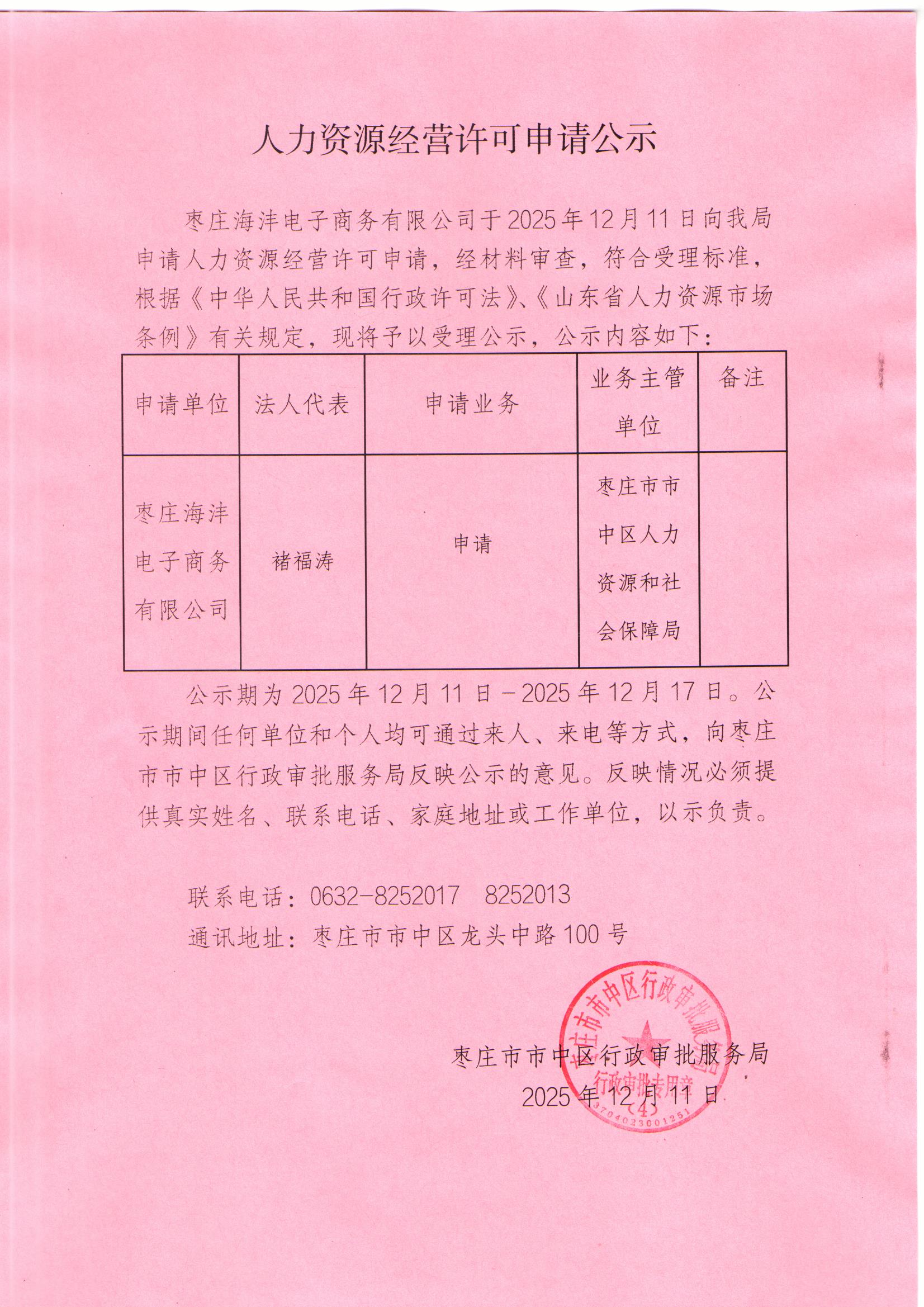• 标  题:市中区行政审批服务局关于人力资源经营申请公示