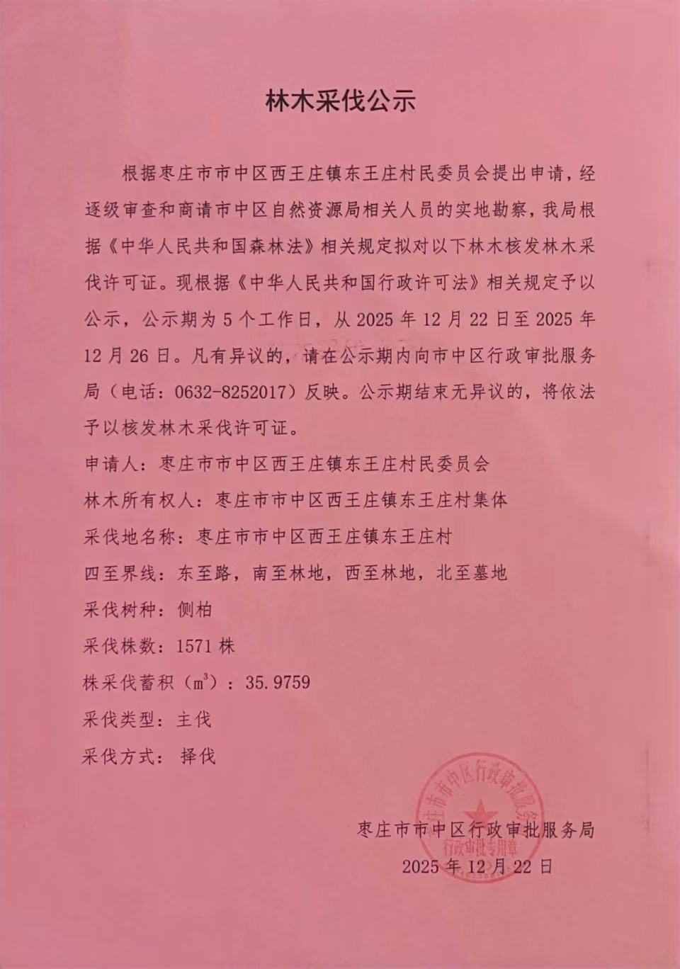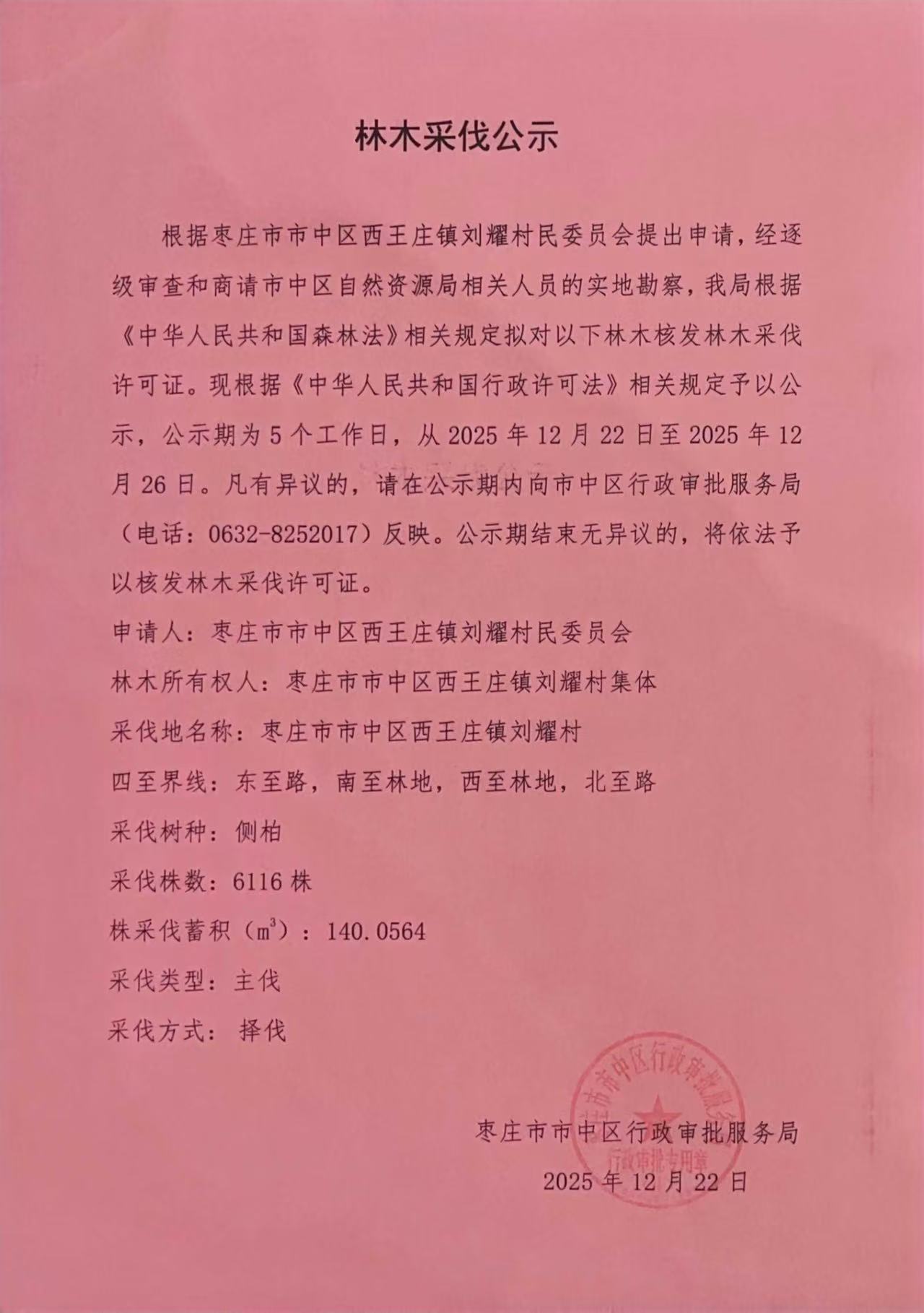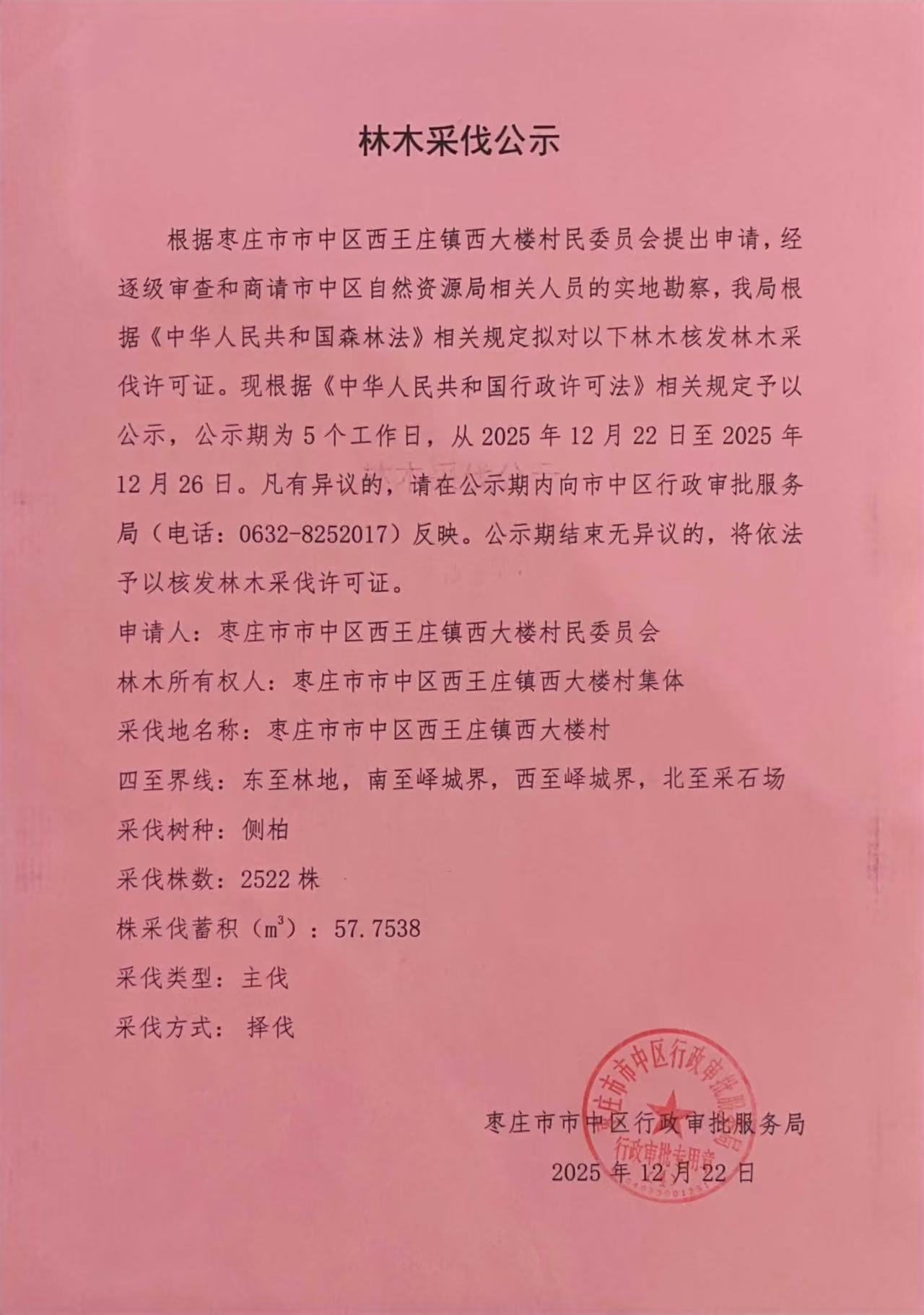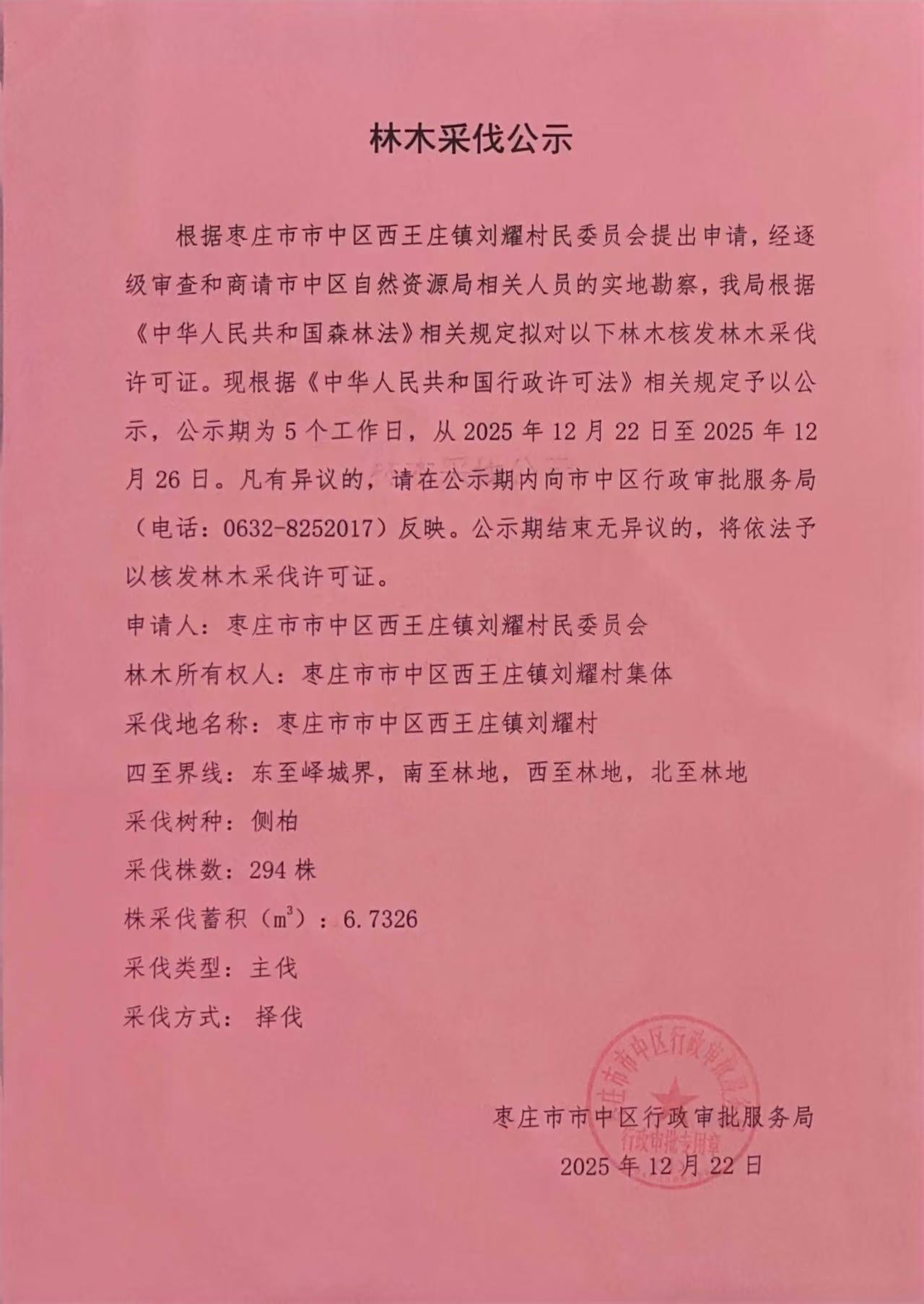 • 标  题:市中区行政审批服务局关于林木采伐公示