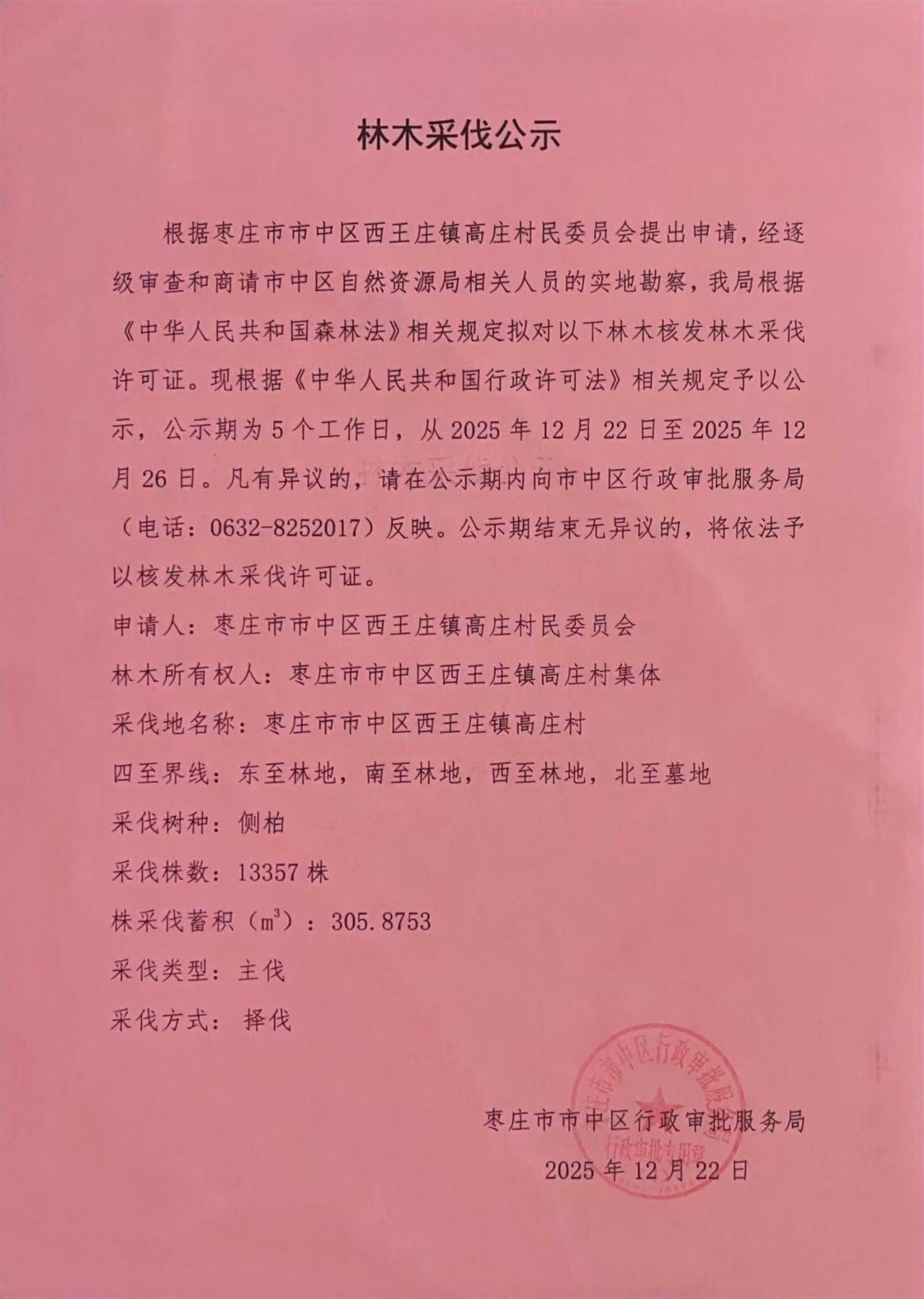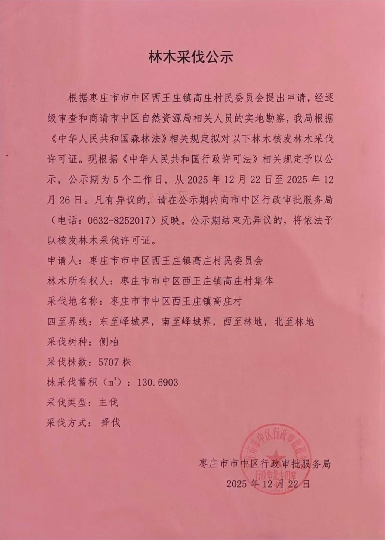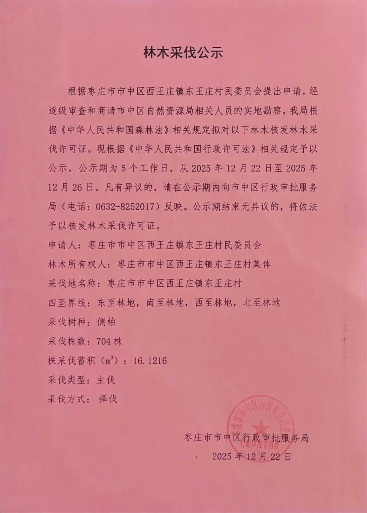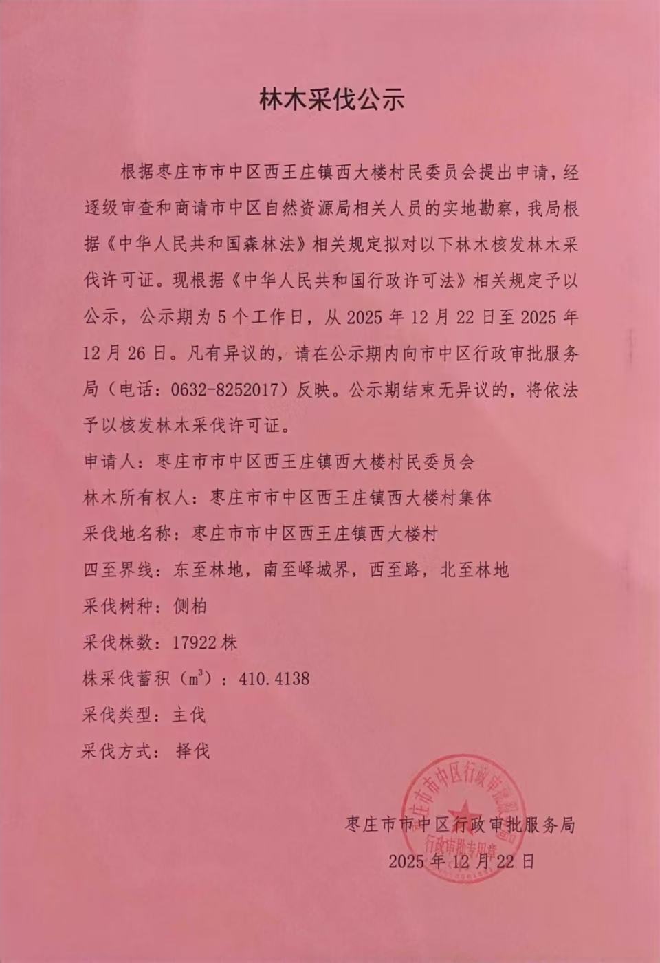 • 标  题:市中区行政审批服务局关于林木采伐公示