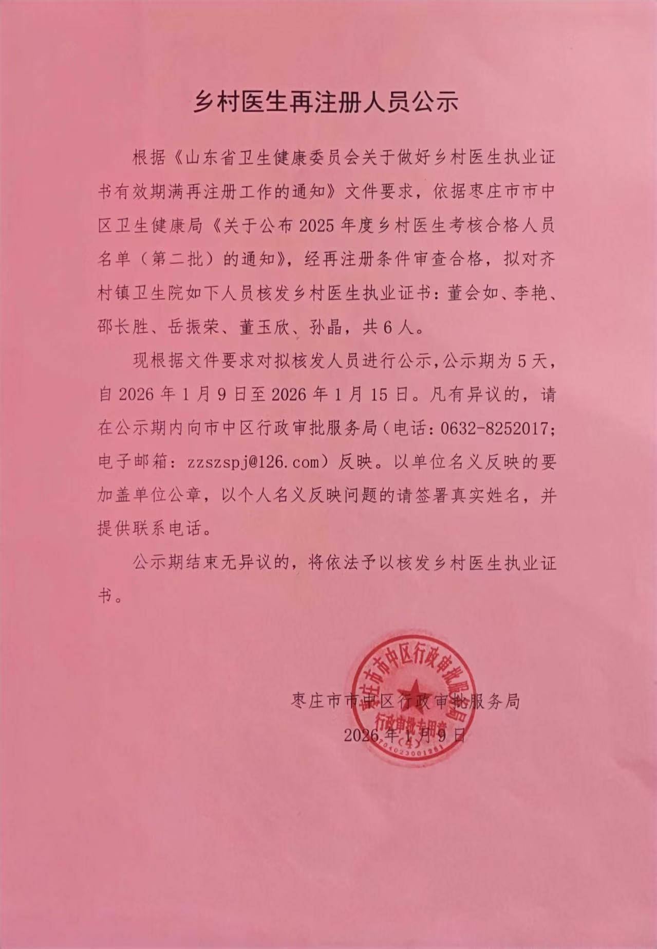 乡村医生再注册人员公示