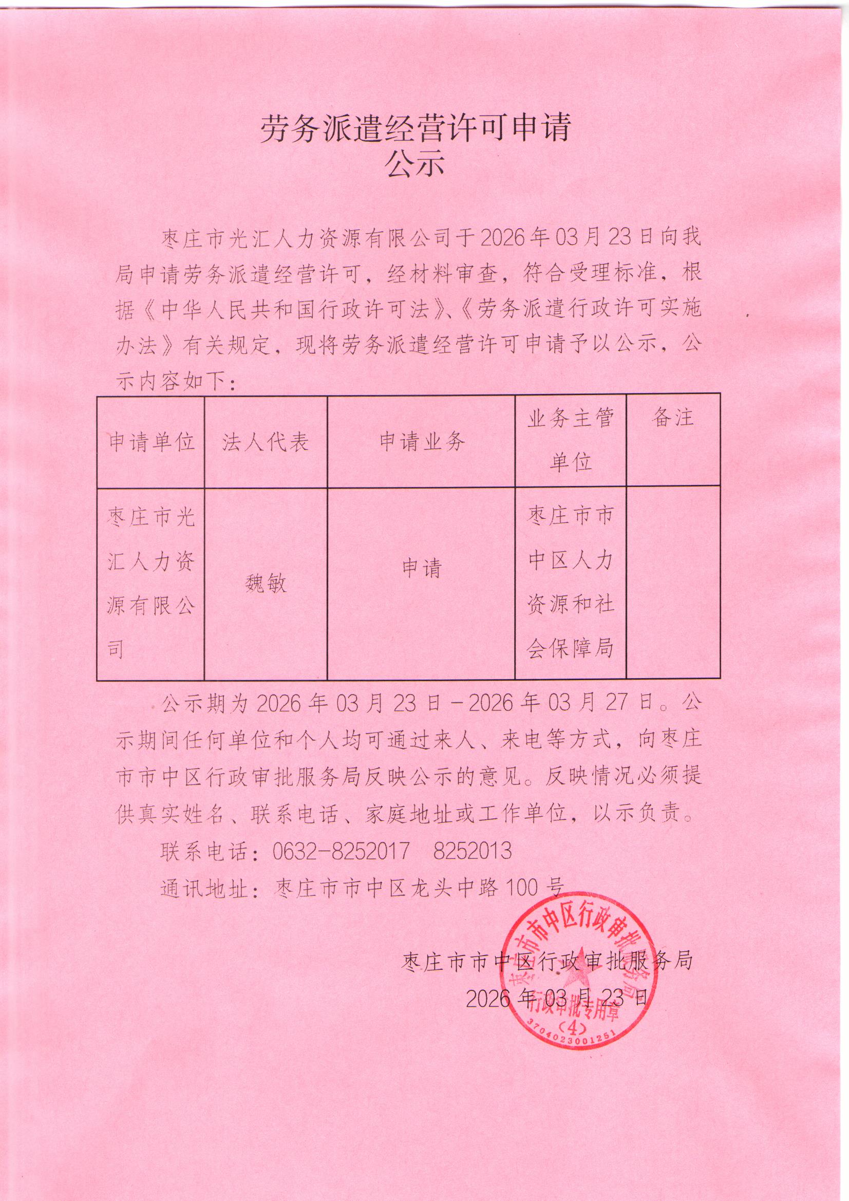 市中区行政审批服务局关于劳务派遣经营许可申请公示