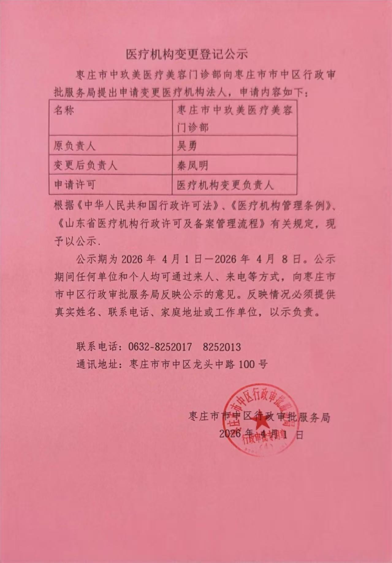 • 标  题:市中区行政审批服务局关于医疗机构变更公示