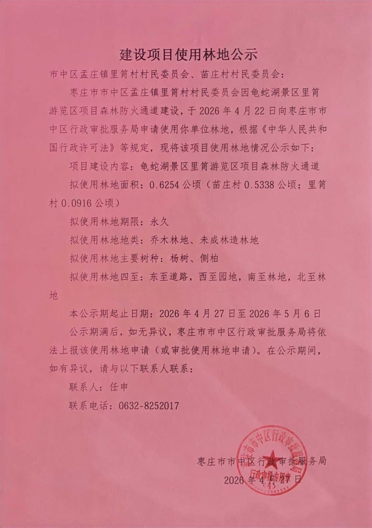 市中区行政审批服务局关于建设项目使用林地公示