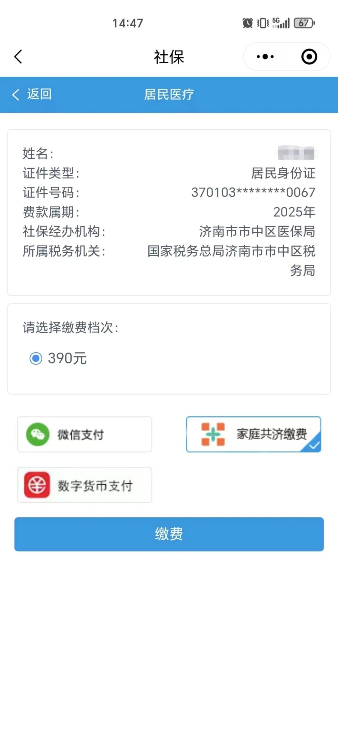 【医保知识】市中区参保人 如何使用“山东税务社保费缴纳”小程序为家人缴纳医保