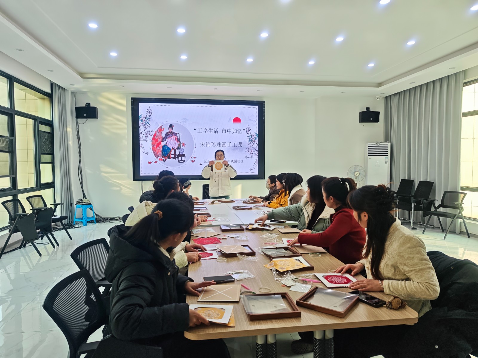 中心街街道开展“非遗新韵润民心 巧手绘就文明花”宋锦珍珠画手工课活动