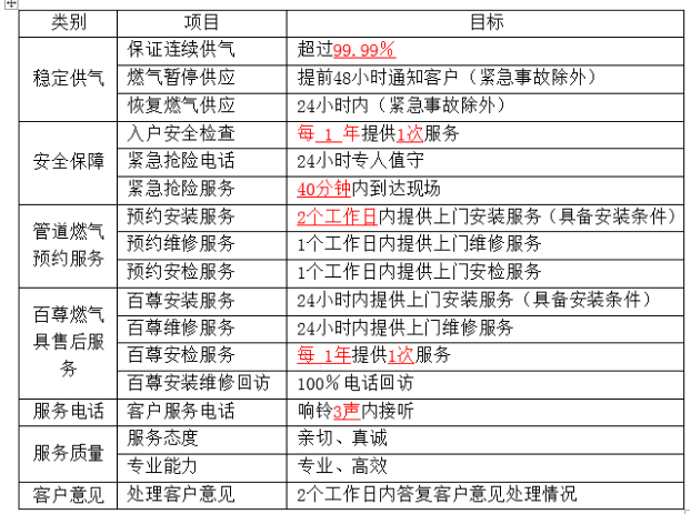 【服务标准】枣庄华润燃气有限责任公司服务标准
