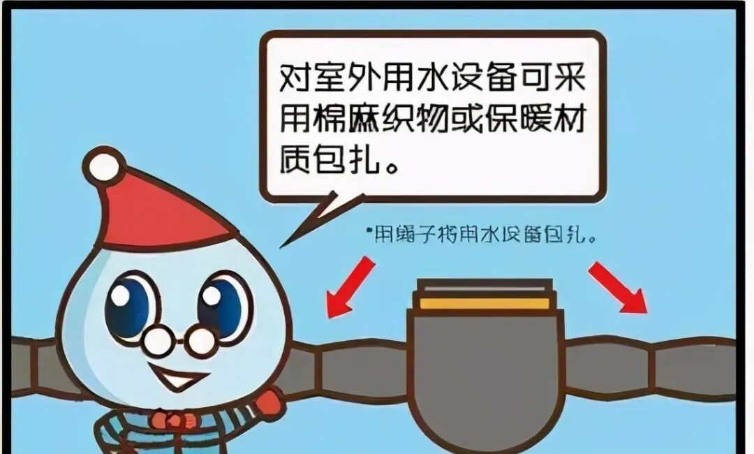 对暴露在外的供水管道、水龙头等供水设施须用棉麻织物、塑料泡沫等保温材料进行包扎。