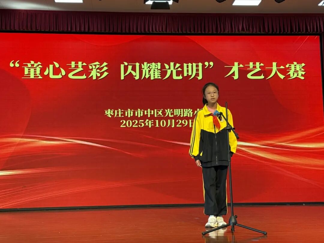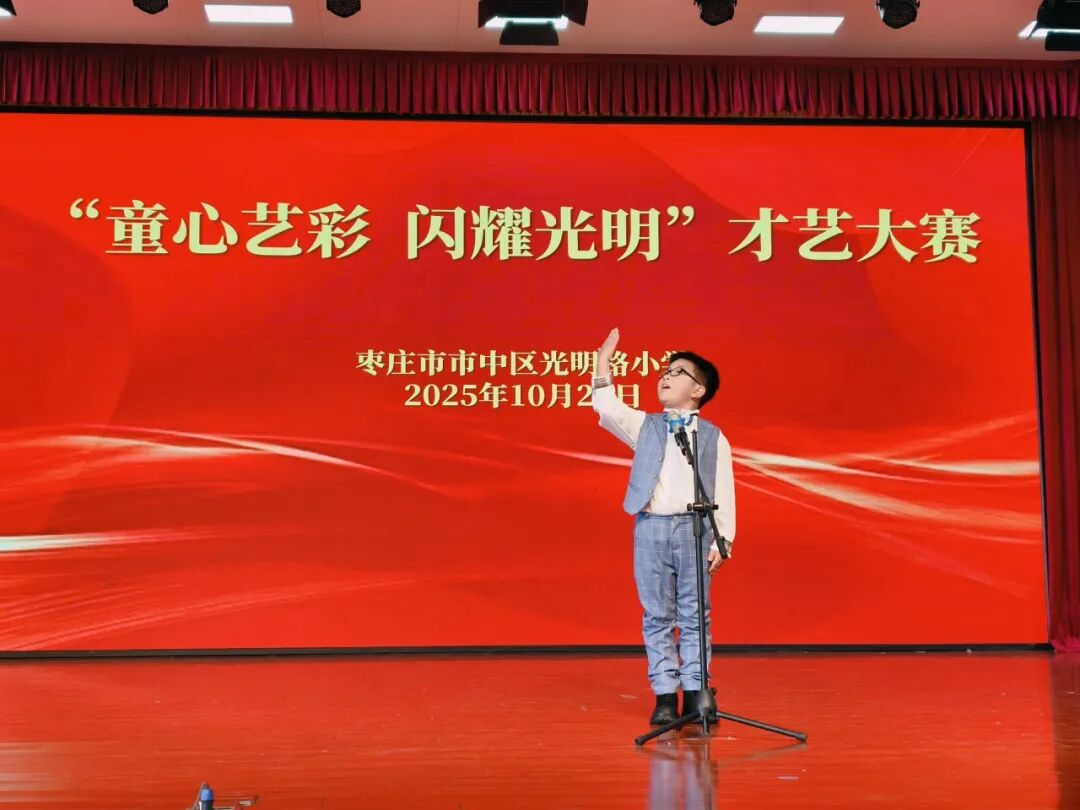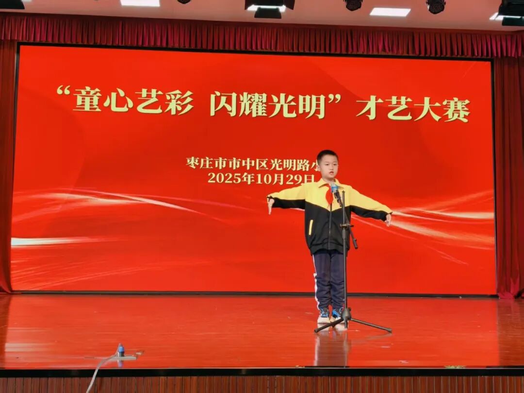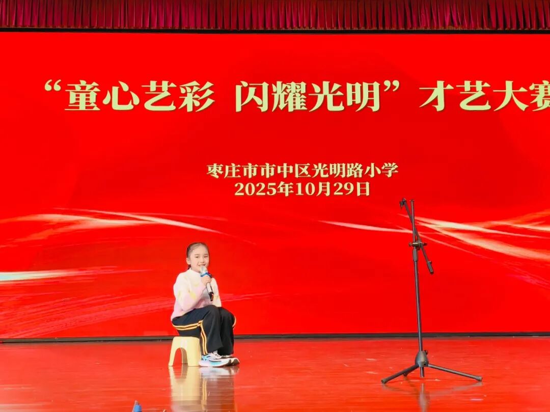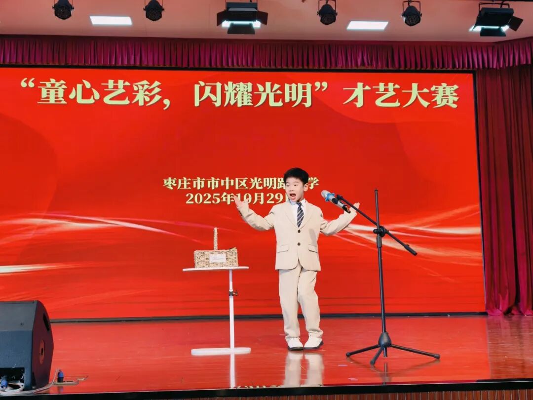 2025年10月29日,枣庄市市中区光明路小学热闹非凡,一场以“童心艺彩,闪耀光明”为主题的语言类才艺大赛成功举办。全校各年级选手齐聚赛场,从绘声绘色的故事讲述,到声情并茂的诗歌朗诵,从创意十足的课本剧表演,到幽默风趣的相声表演,小选手们用稚嫩却真挚的语言,展现了对文字的热爱与表达的自信,上演了一场精彩的语言盛宴。