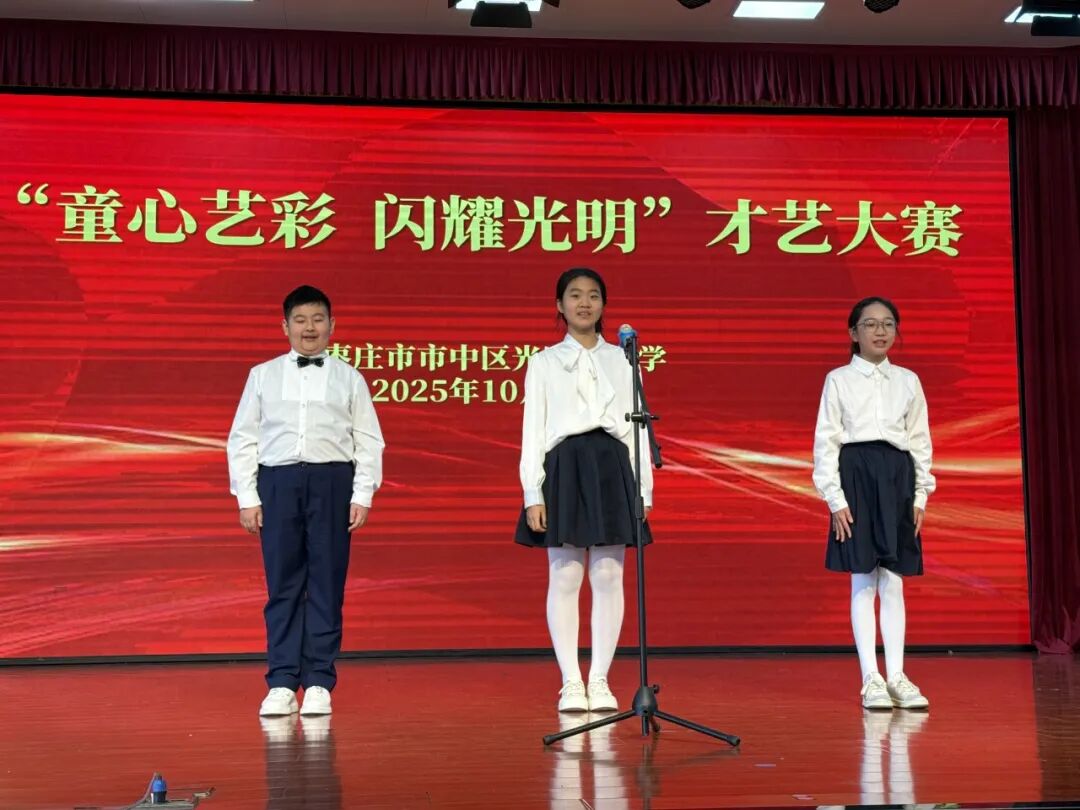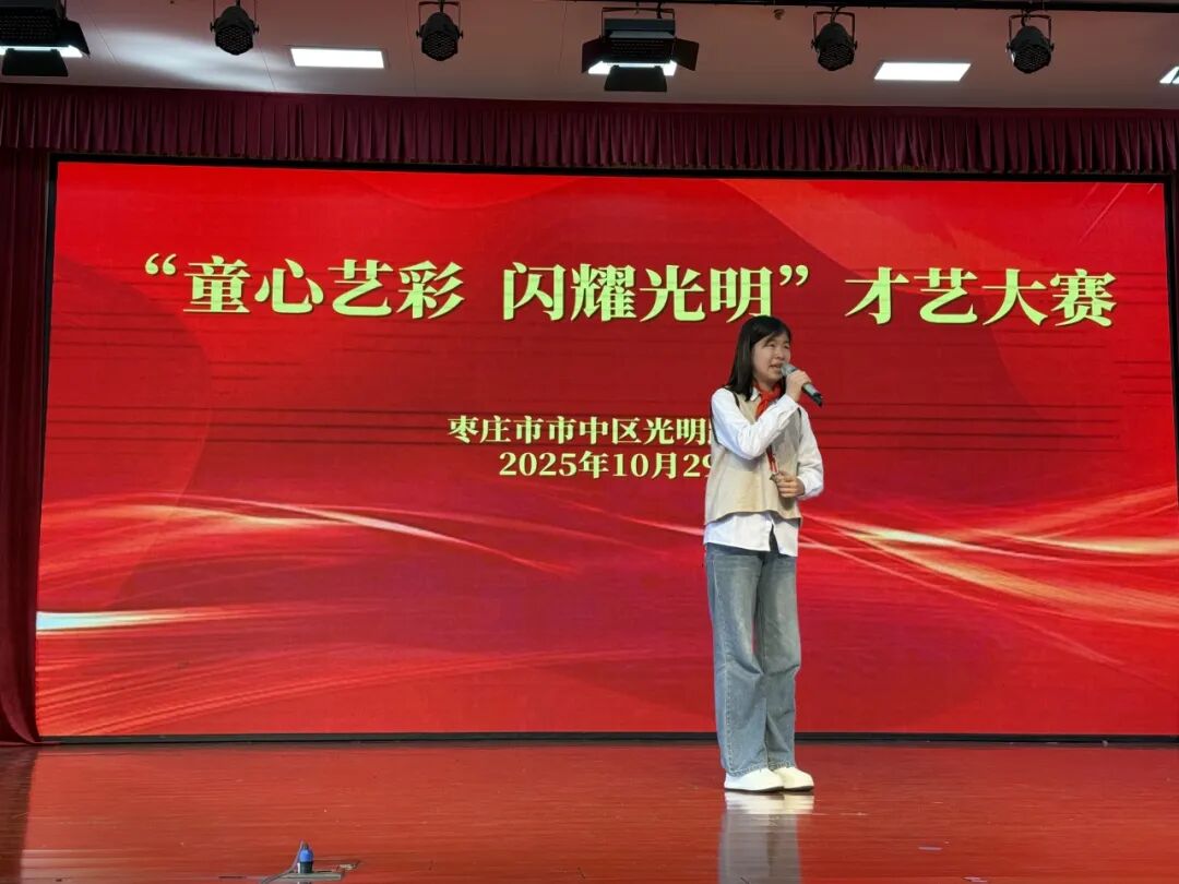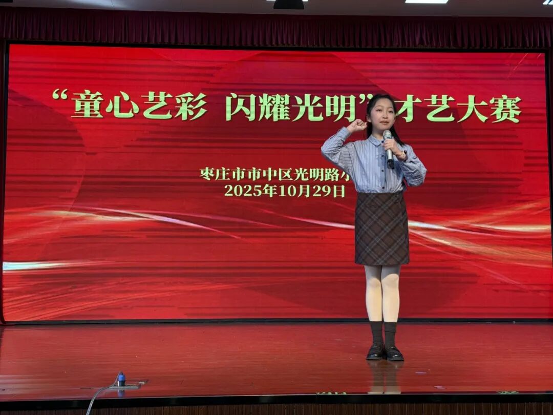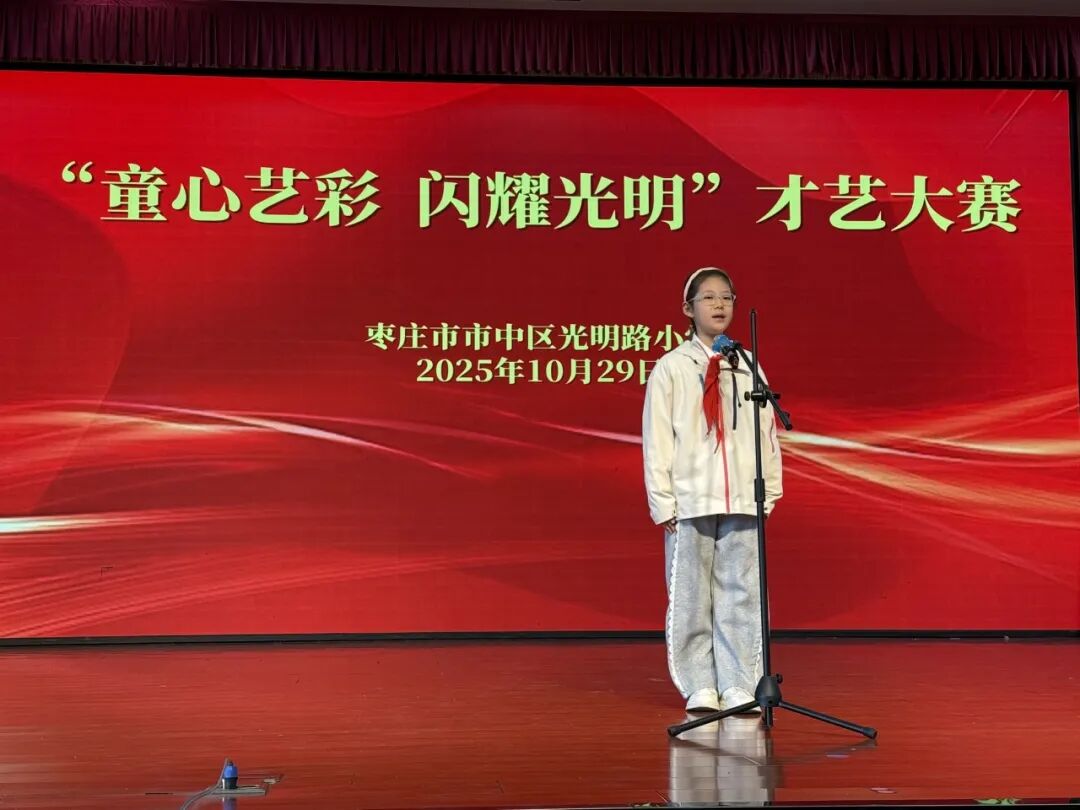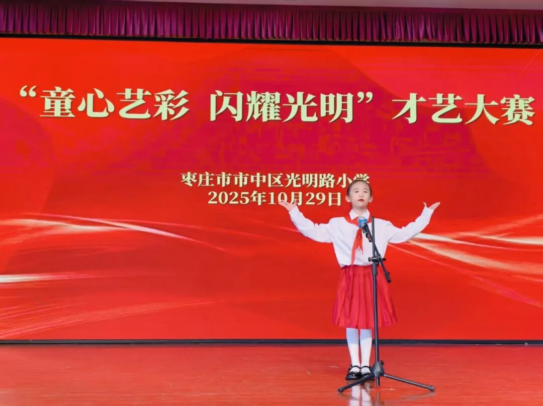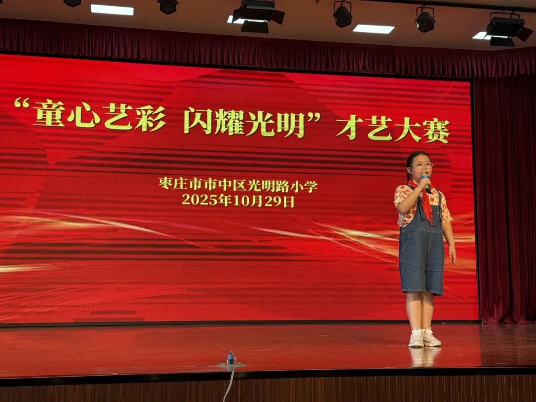 2025年10月29日,枣庄市市中区光明路小学热闹非凡,一场以“童心艺彩,闪耀光明”为主题的语言类才艺大赛成功举办。全校各年级选手齐聚赛场,从绘声绘色的故事讲述,到声情并茂的诗歌朗诵,从创意十足的课本剧表演,到幽默风趣的相声表演,小选手们用稚嫩却真挚的语言,展现了对文字的热爱与表达的自信,上演了一场精彩的语言盛宴。