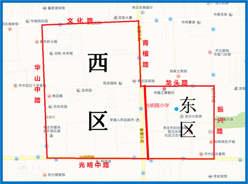 东至振兴路,南至光明路,西至华山路,北至文化路沿青檀路至龙头路。