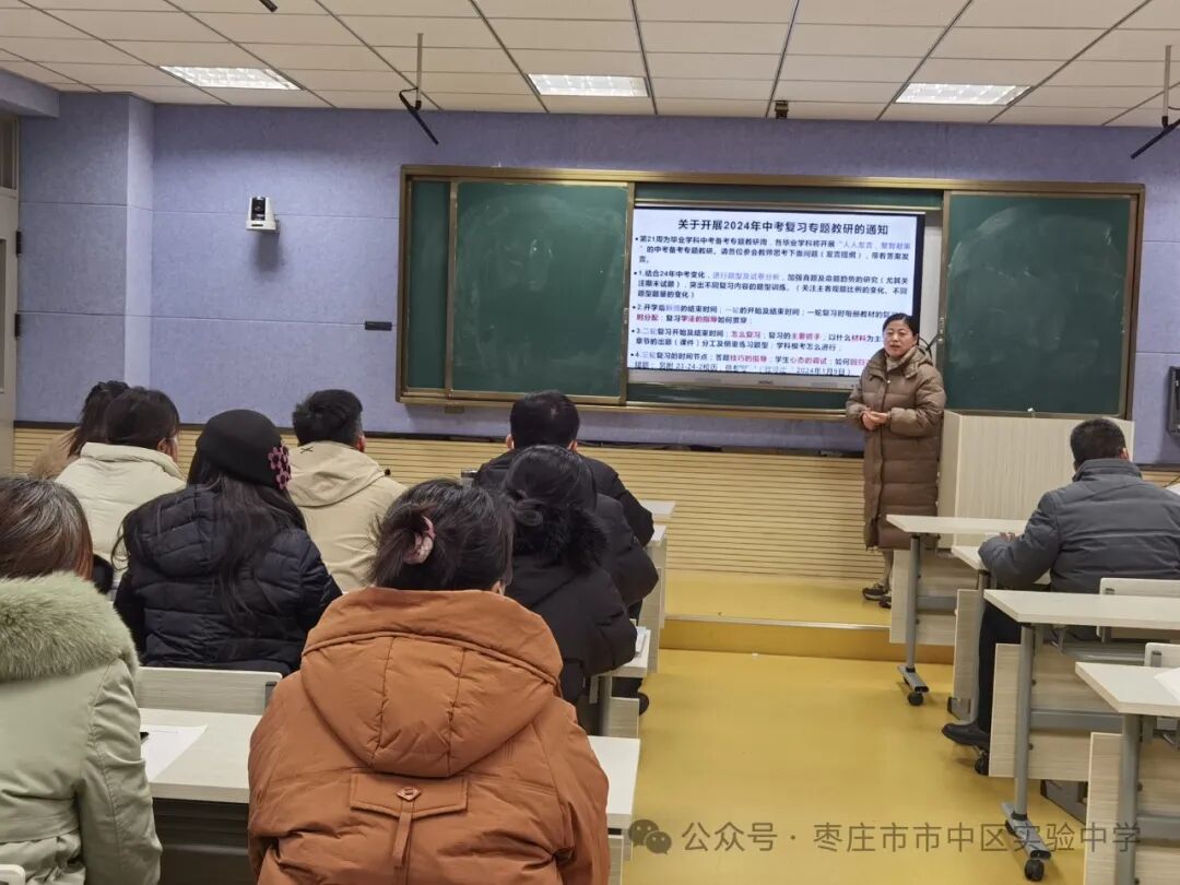 为准确把握中考方向,优化备考计划,扎实有效推进2024届新中考复习备考工作,明确复习策略,提升复习效率,提高新中考备考教学的科学性、针对性和实效性,1月16-19日,枣庄市市中区实验中学举行2024届中考备考规划研讨会。两校区九年级教师、八年级地生老师分专场参会。会议由各教研组长主持。