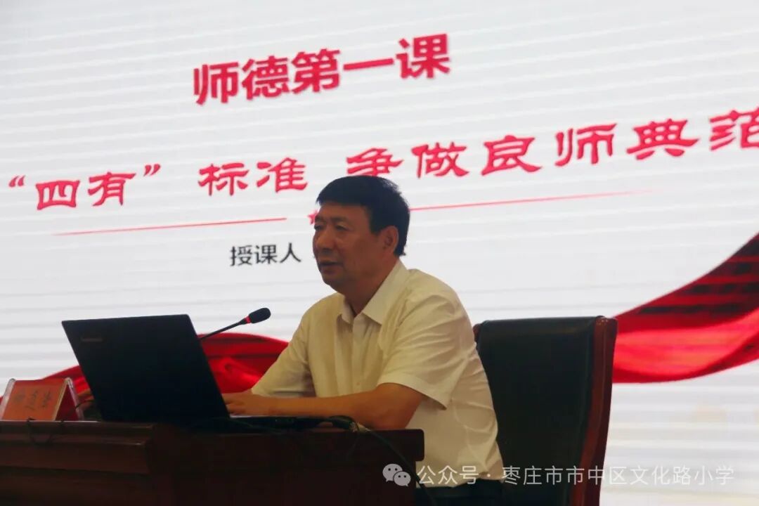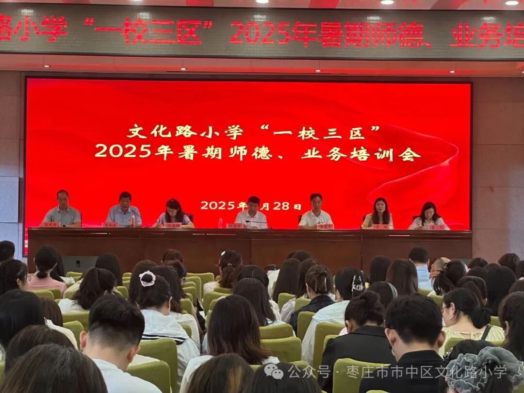 为了进一步加强教师的职业道德修养,提高教师的专业素质和教学实践能力,提升教师的教育科研及驾驭课堂教学能力,全面提高教学质量,枣庄市市中区文化路小学开展了2025年暑期师德业务培训。文化路小学“一校三区”全体教师参加了培训。