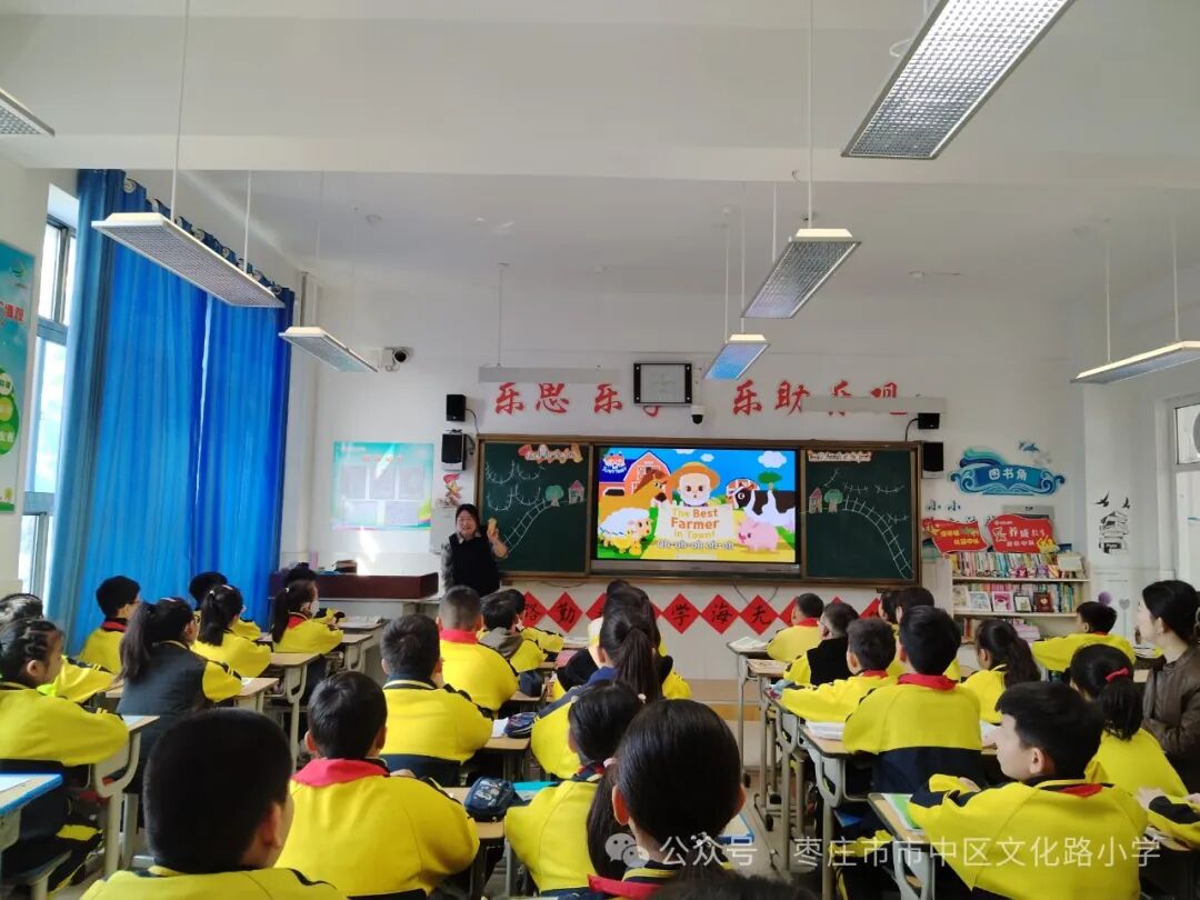 贾继军老师执教本单元的第三节课时“Enjoy the life at the farm”,本节课承接前两节课时的内容,在story time文本基础上补充拓展绘本“A day on the farm”。学生通过前两课时的学习,知道如何介绍农场的蔬菜和动物,体会到农民的辛苦。在前两课时的基础上本节课进一步感受农场生活,了解农场内的活动,享受农场生活的乐趣。
