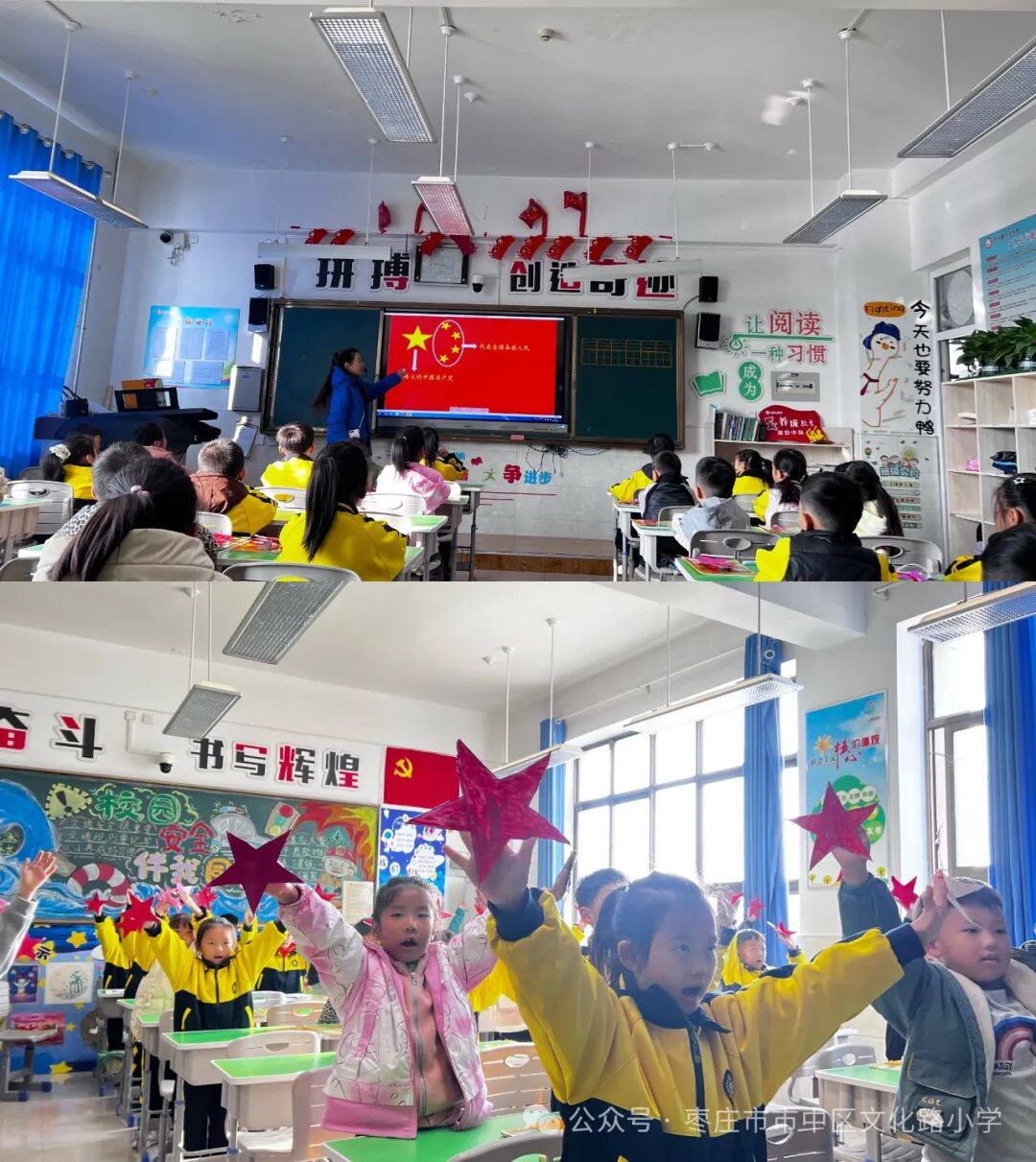 王冬全老师执教的是《国旗国旗真美丽》。王老师精心构思教学环节,从引导孩子们认识国旗、了解国旗的深刻含义开始,如同一位智慧的引路人,带领着孩子们逐步走进音乐的奇妙世界。充满活力的按节奏律动环节,让孩子们仿佛化身为一个个灵动的音符,在音乐的海洋中尽情舞动。