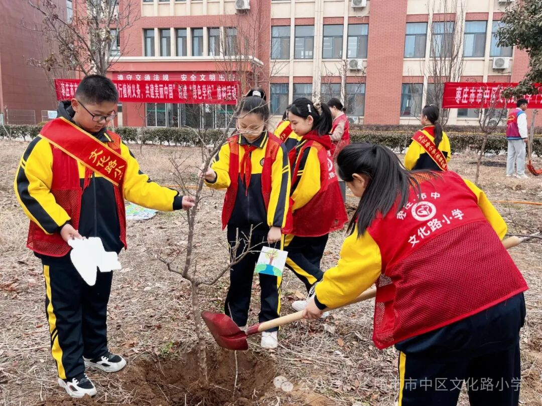 312日,在这个阳光明媚、充满希望的植树节,市中区文化路小学党支部组织党员和学校少先队员代表走进文化路小学齐福校区开展植树活动。此次活动不仅发挥了党员先锋模范作用,为校园增添了一抹新绿,更在师生心中播撒下了环保与责任的种子。