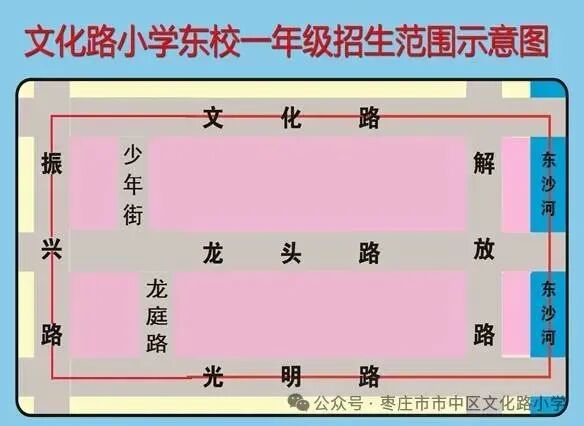东至东沙河,南至光明路,西至振兴路,北至文化路。(附学区范围示意图)