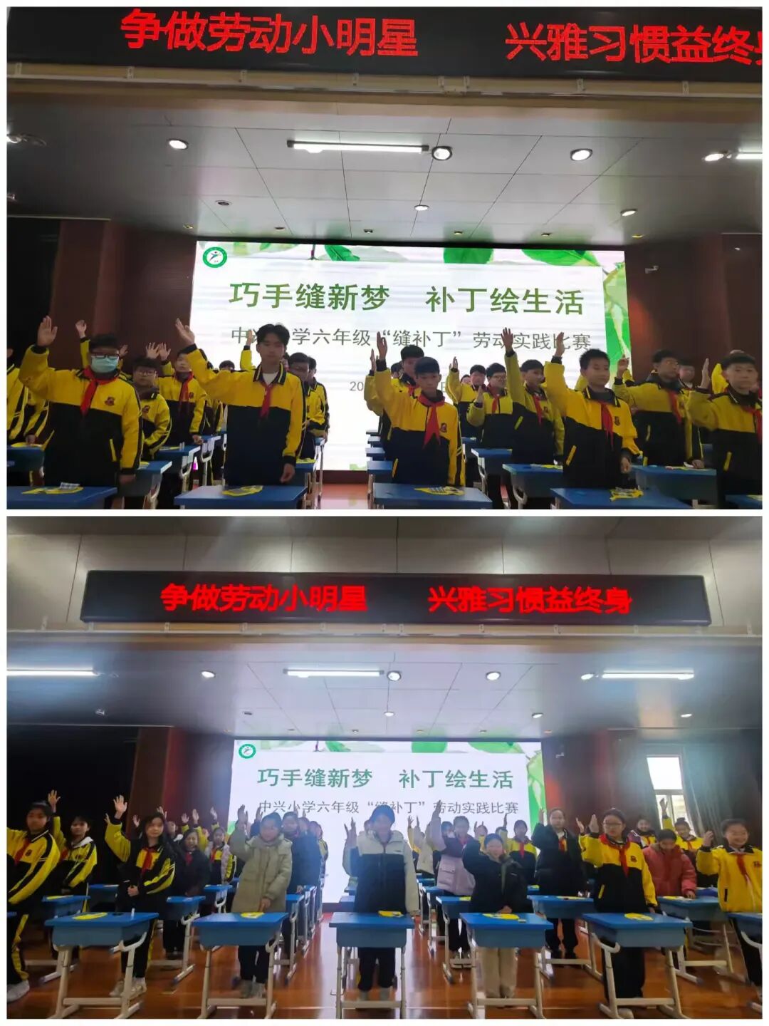 随着现代生活节奏的加快,许多传统手工艺逐渐被边缘化。缝补丁作为一项简单实用的生活技能,不仅能够培养学生的动手能力和创造力,还能增强他们对物品的珍惜意识。为提升我学部学生的生活自理能力,养成良好的行为习惯,并传承勤俭节约的中华传统美德,中兴小学六年级学部组织开展“巧手缝新梦 补丁绘生活”劳动实践系列活动之缝补丁活动。