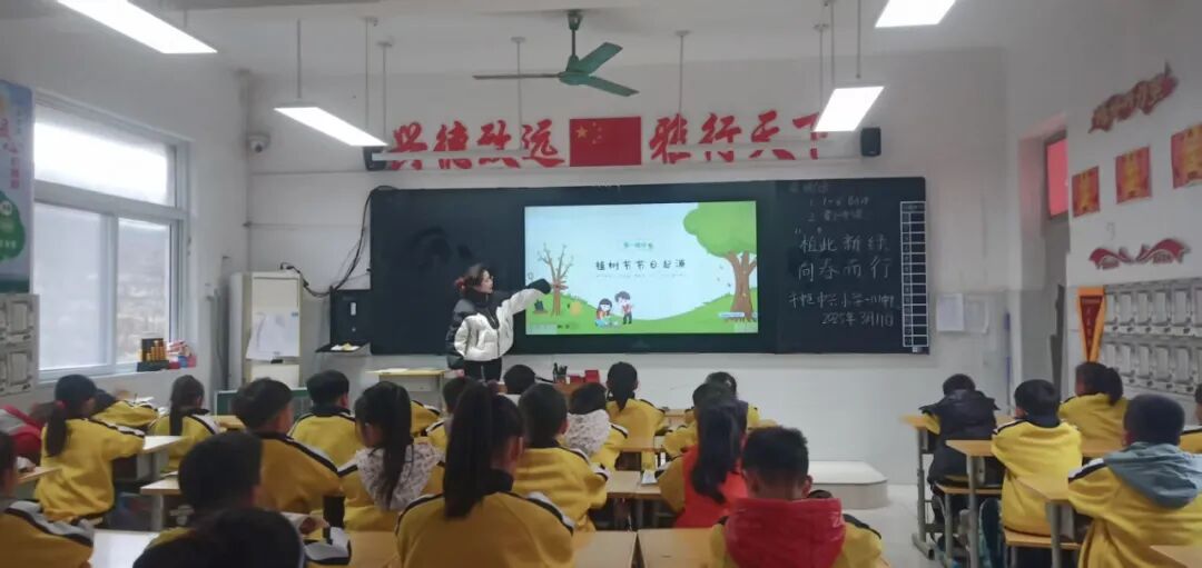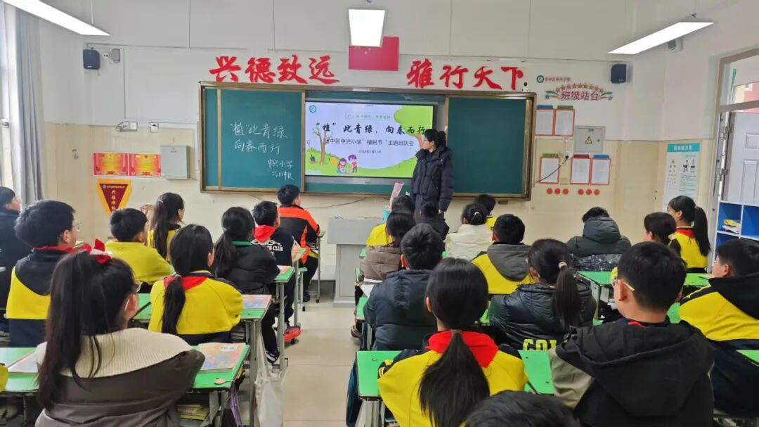 为了增强队员们的环保意识,树立“爱绿护绿”的理念,学校各中队开展了以”植此青绿,向春而行”为主题的植树节队会活动。通过生动的图片和视频,队员们深刻认识到植树造林对于保护生态环境、建设美丽中国的重要性。