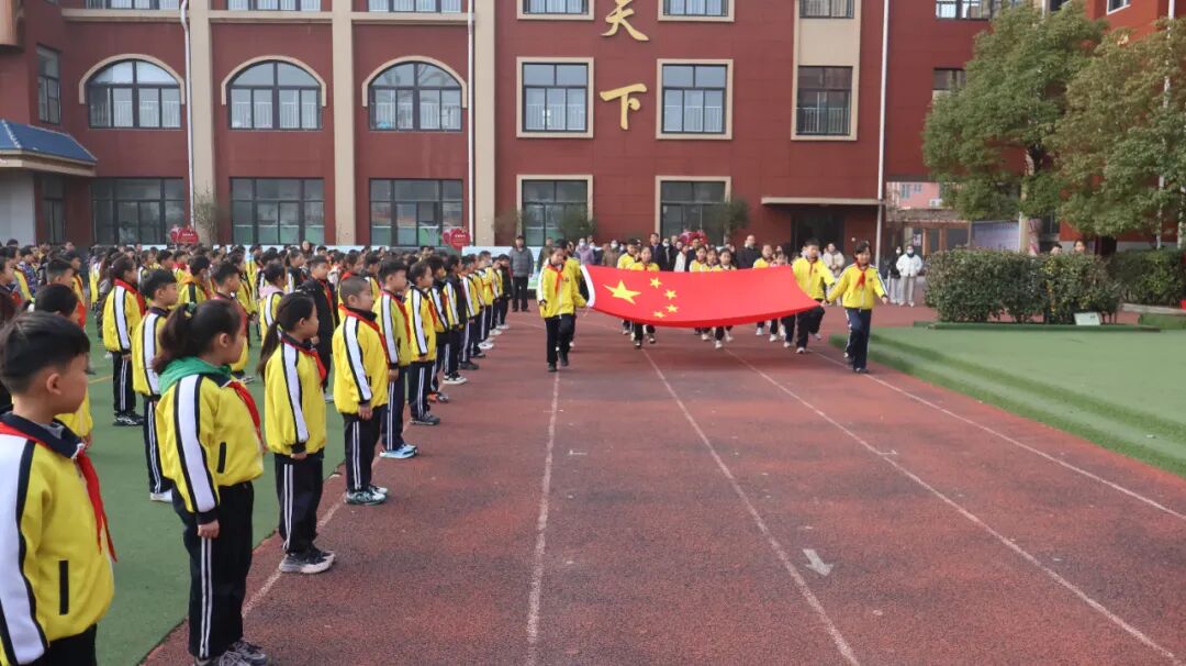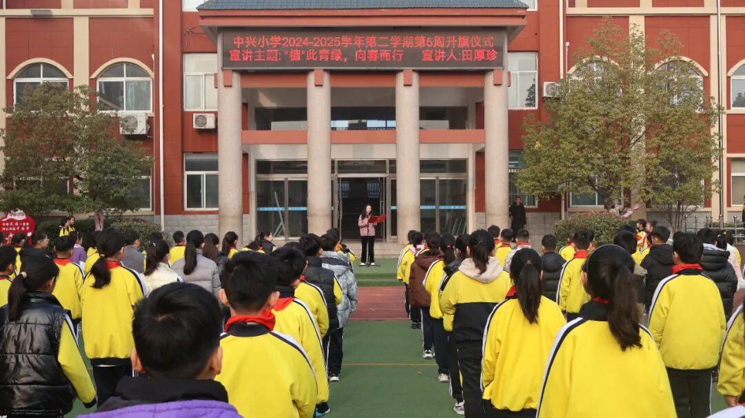 周一早上,中兴小学的校园回荡着慷慨激昂的旋律,全体师生凝视着国旗,队员们整齐的队礼彰显着新时代菁茁少年的风采。田老师鼓励大家积极参与植树造林,保护生态环境。队员们深受鼓舞,纷纷表示将用实际行动为地球添绿,让校园更加美丽。