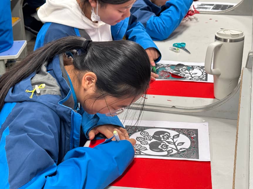 贴合中学生身心发展规律与现代美育教学要求,剪纸课外活动坚持系统化、规范化开展,做到教学有目标、实践有方法、育人有成效。活动严格遵循循序渐进的教学原则,从剪纸基础认知入手,向学生讲解剪纸艺术的历史渊源、文化内涵与艺术价值,打破传统技艺教学的单一模式,将文化传承、动手实践、审美培养融为一体,契合现代教育“以生为本、全面育人”的核心理念。