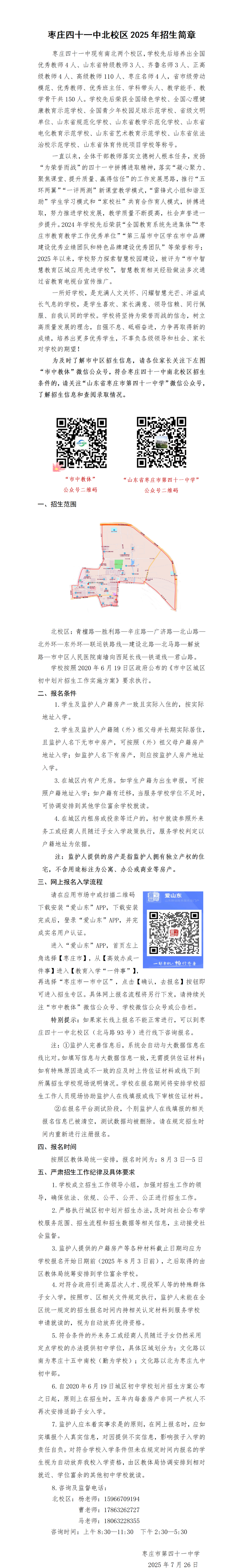 【招生信息】枣庄市第四十一中学2025年招生计划、招生范围、招生对象
