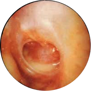 疼痛、反复流水流脓,听力受损,查体可见鼓膜穿孔伴分泌物。