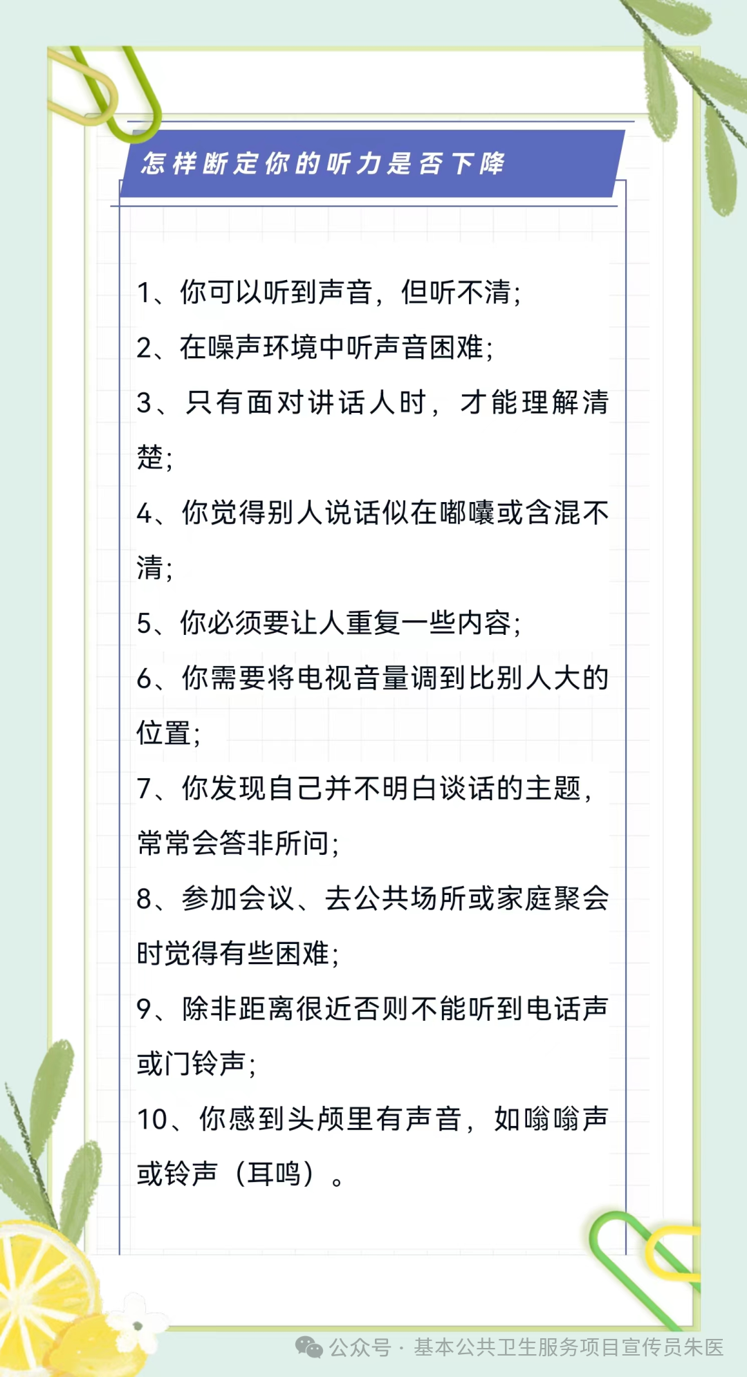 2、定期检查:定期进行听力检查,及时发现听力问题,以便采取有效措施进行干预。
