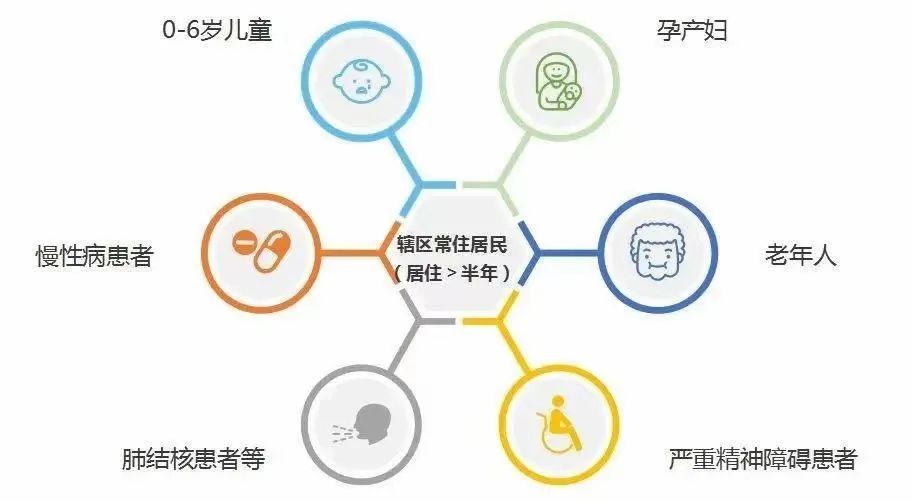 辖区内常住居民(指居住半年以上的户籍及非户籍居民),如户籍在辖区,但不居住本辖区的居民不属建档对象。以0~6岁儿童、孕产妇、老年人、慢性病患者、严重精神障碍患者和肺结核患者等人群为重点。